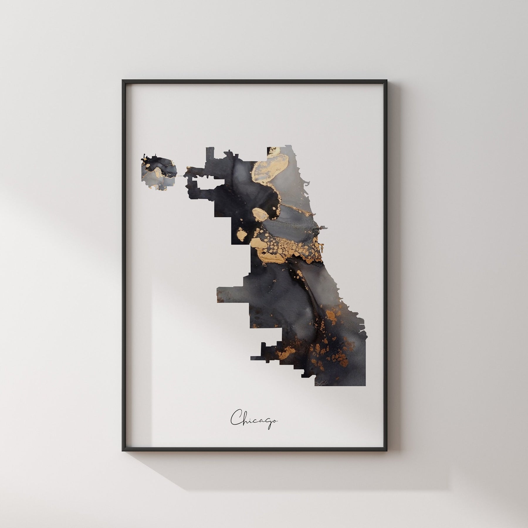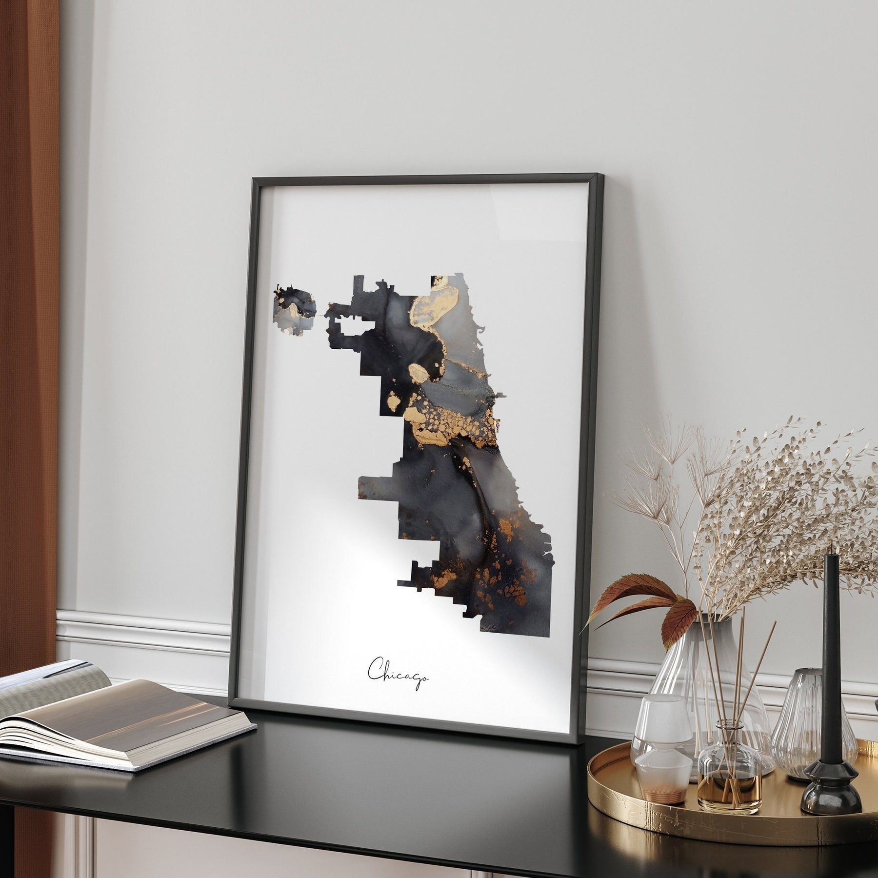 Chicago Map Black & Gold Wall Art Print | Illinois | USA | United States of America [EV]