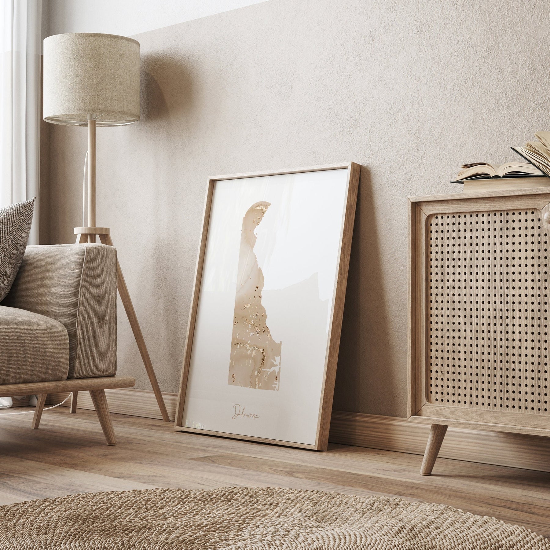 Delaware Map Beige & Gold Wall Art Print | US State | USA | United States of America