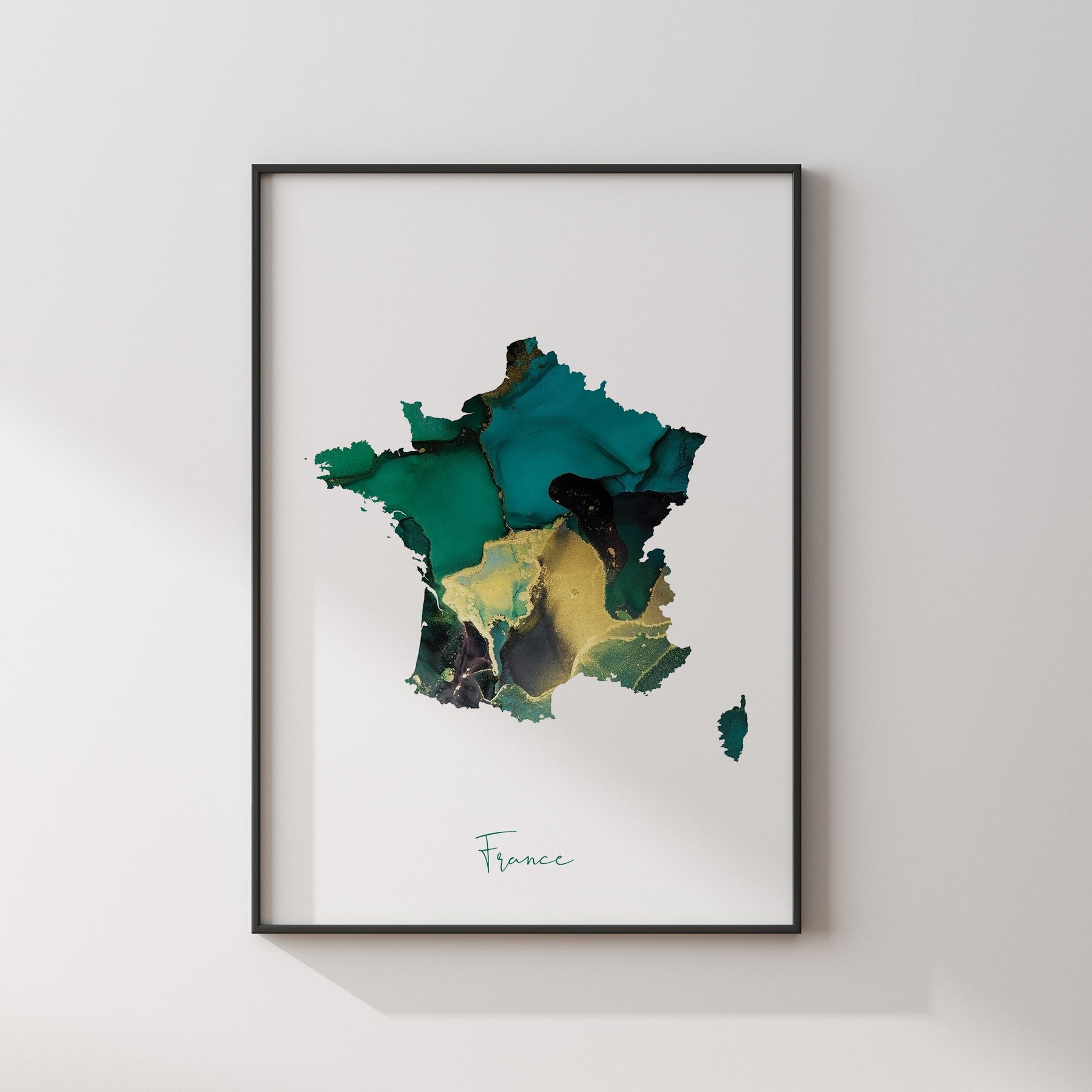 Unframed Emerald Green & Gold France Map Wall Art Print (Please note the colours may vary slightly from those displayed on your screen)