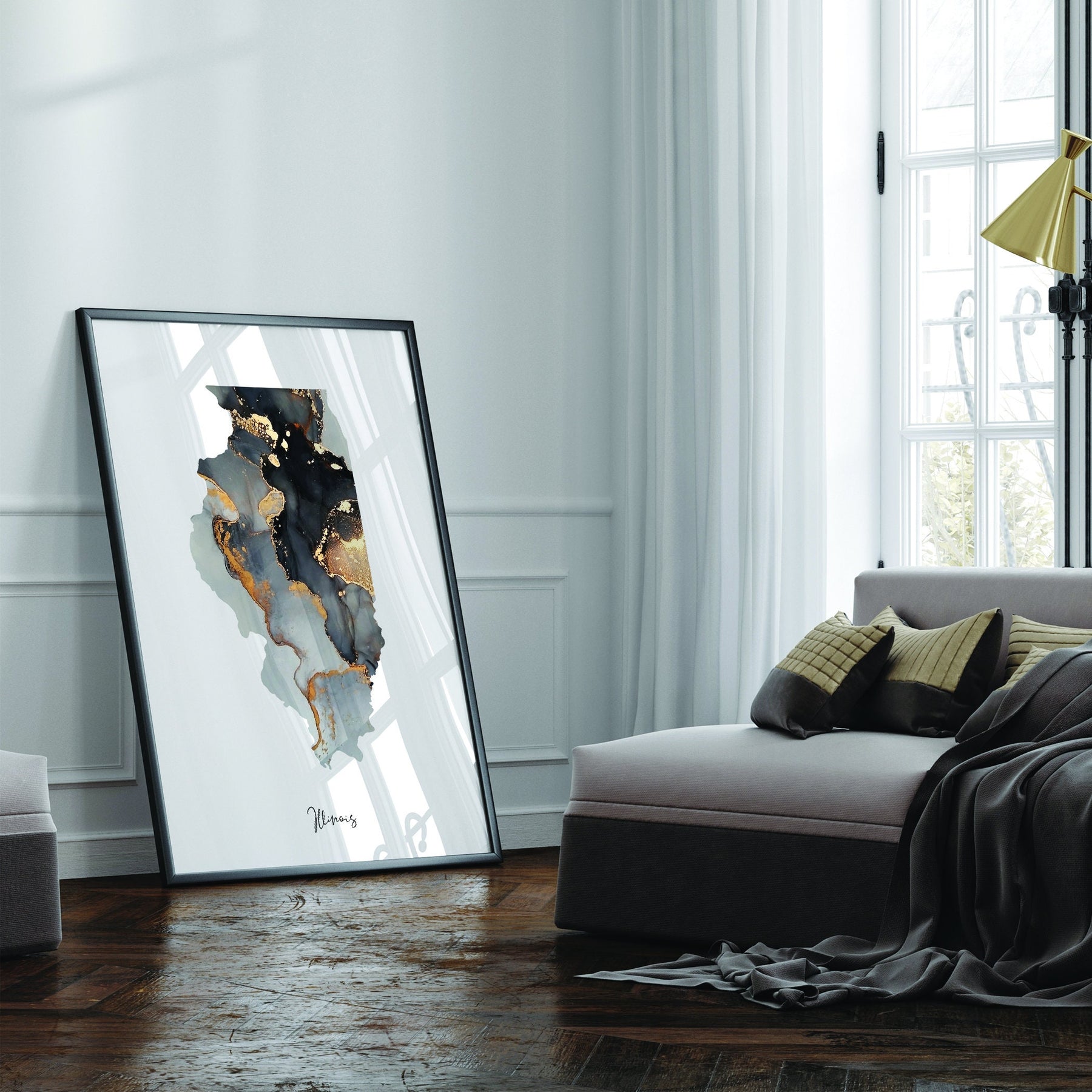 Illinois Map Black & Gold Wall Art Print US State | USA | United States of America