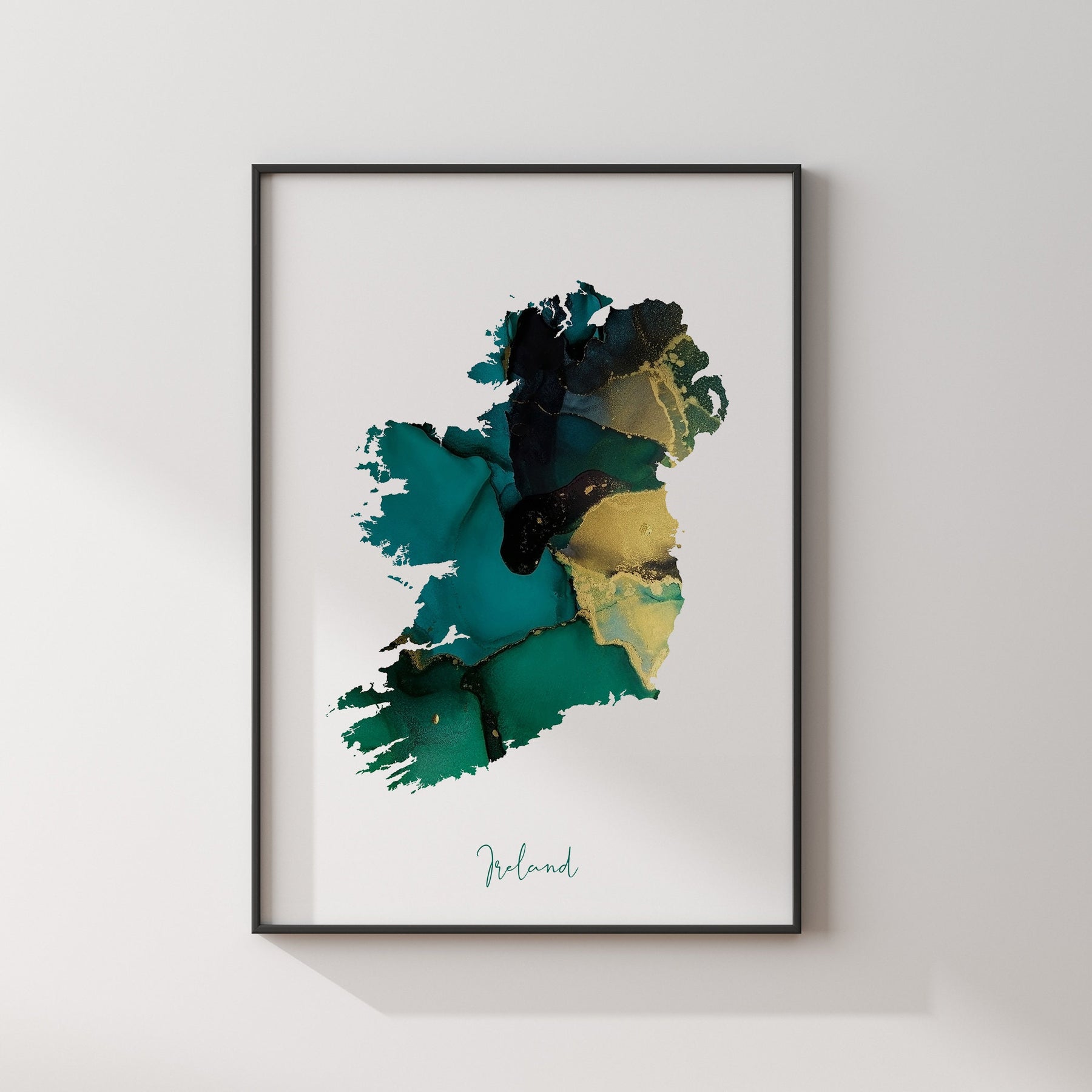 Unframed Emerald Green & Gold Ireland Map Wall Art Print (Please note the colours may vary slightly from those displayed on your screen)
