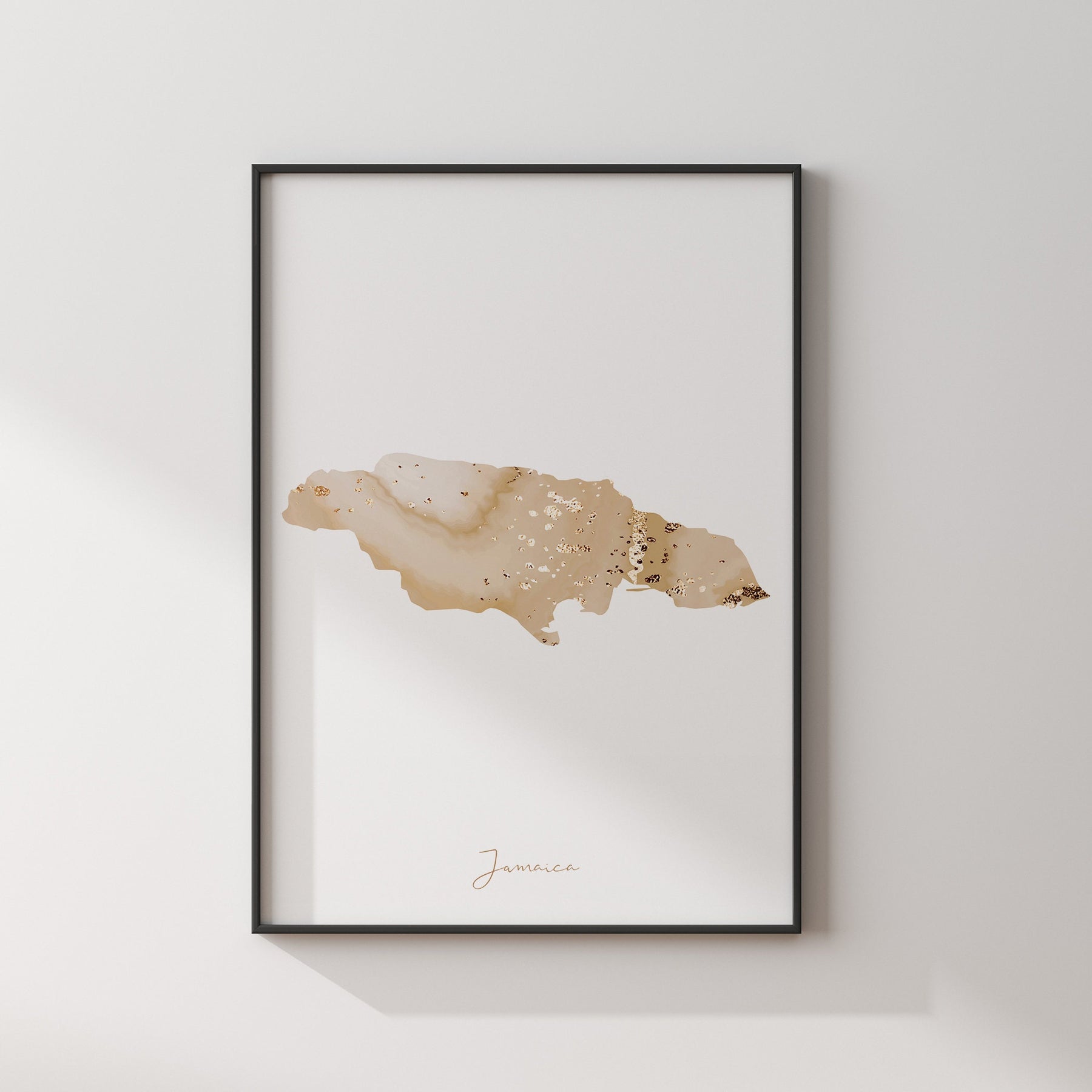 Jamaica Map Beige & Gold Wall Art Print