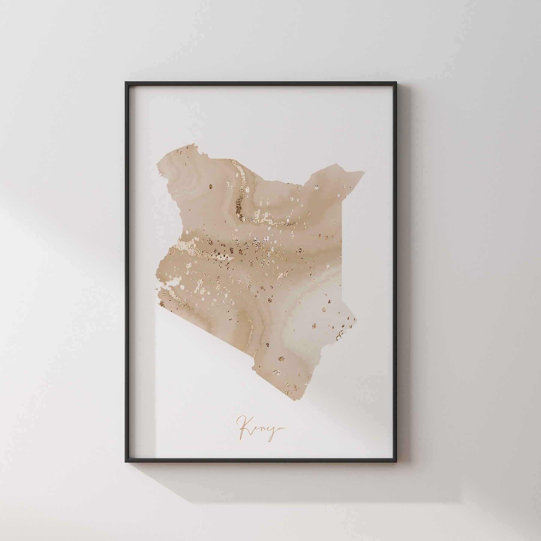 Unframed Kenya Map Wall Art Print (Please note the colours may vary slightly from those displayed on your screen)