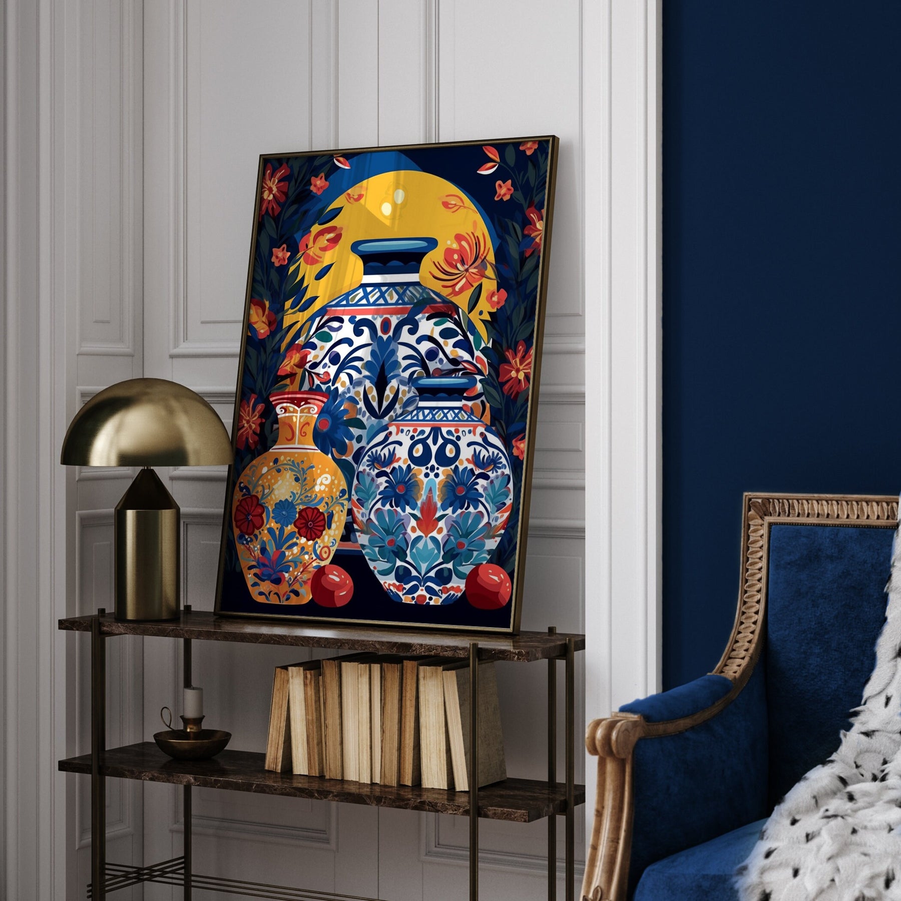 Mexican Wall Art | Talavera Vase Pattern | Mexico Wall Art Print | Mexican Decor