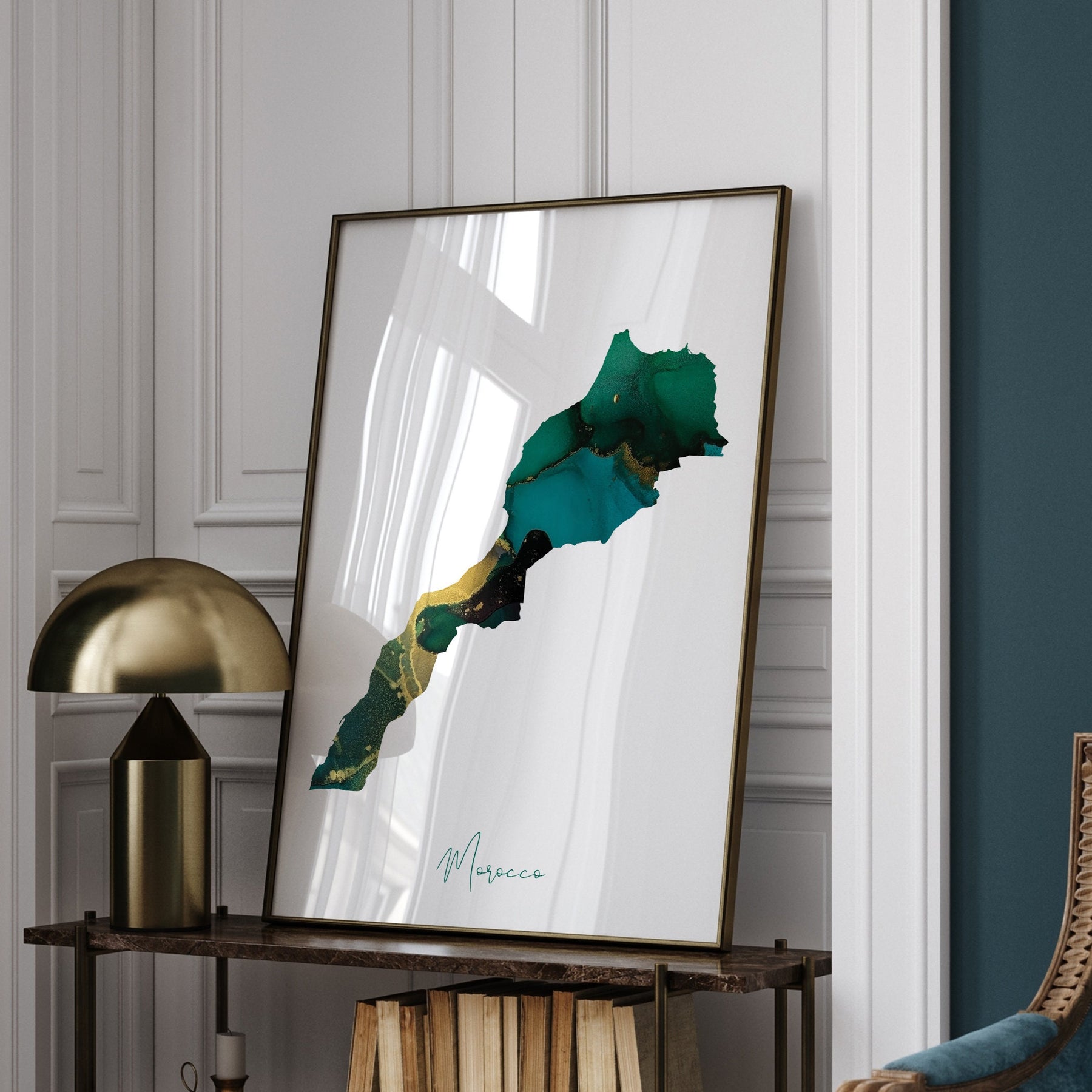Morocco Map Emerald Green and Gold Wall Art Print