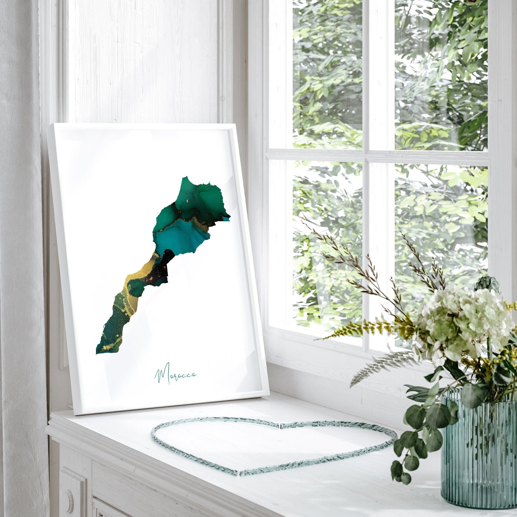 Unframed Emerald Green & Gold Morocco Map Wall Art Print (Please note the colours may vary slightly from those displayed on your screen)