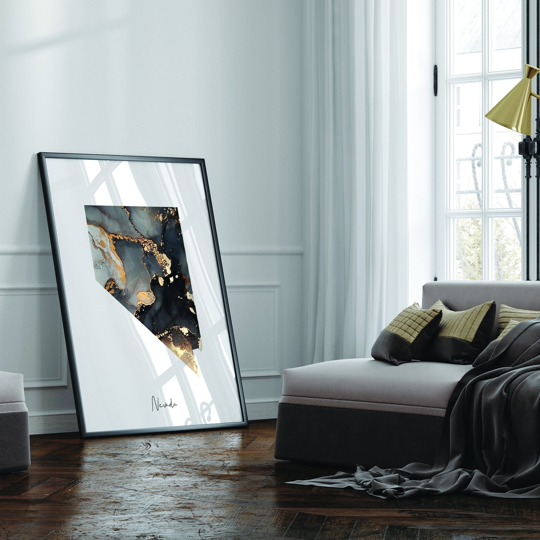 Nevada Map Black & Gold Wall Art Print US State | USA | United States of America