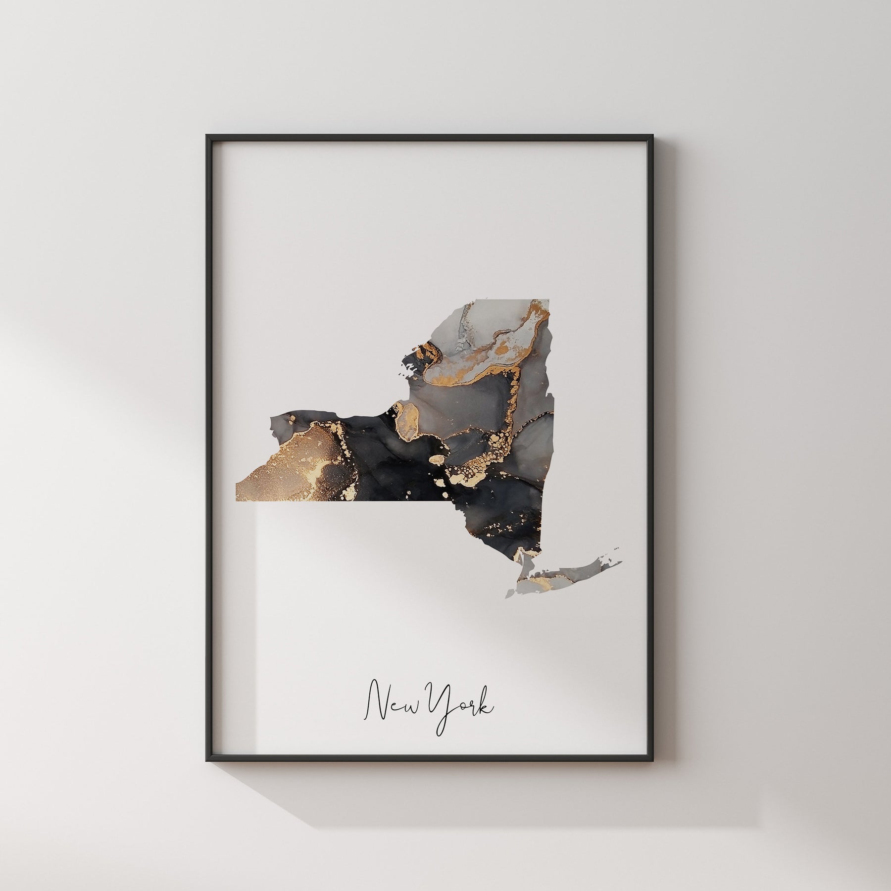 New York Map Black & Gold Wall Art Print US State | USA | United States of America