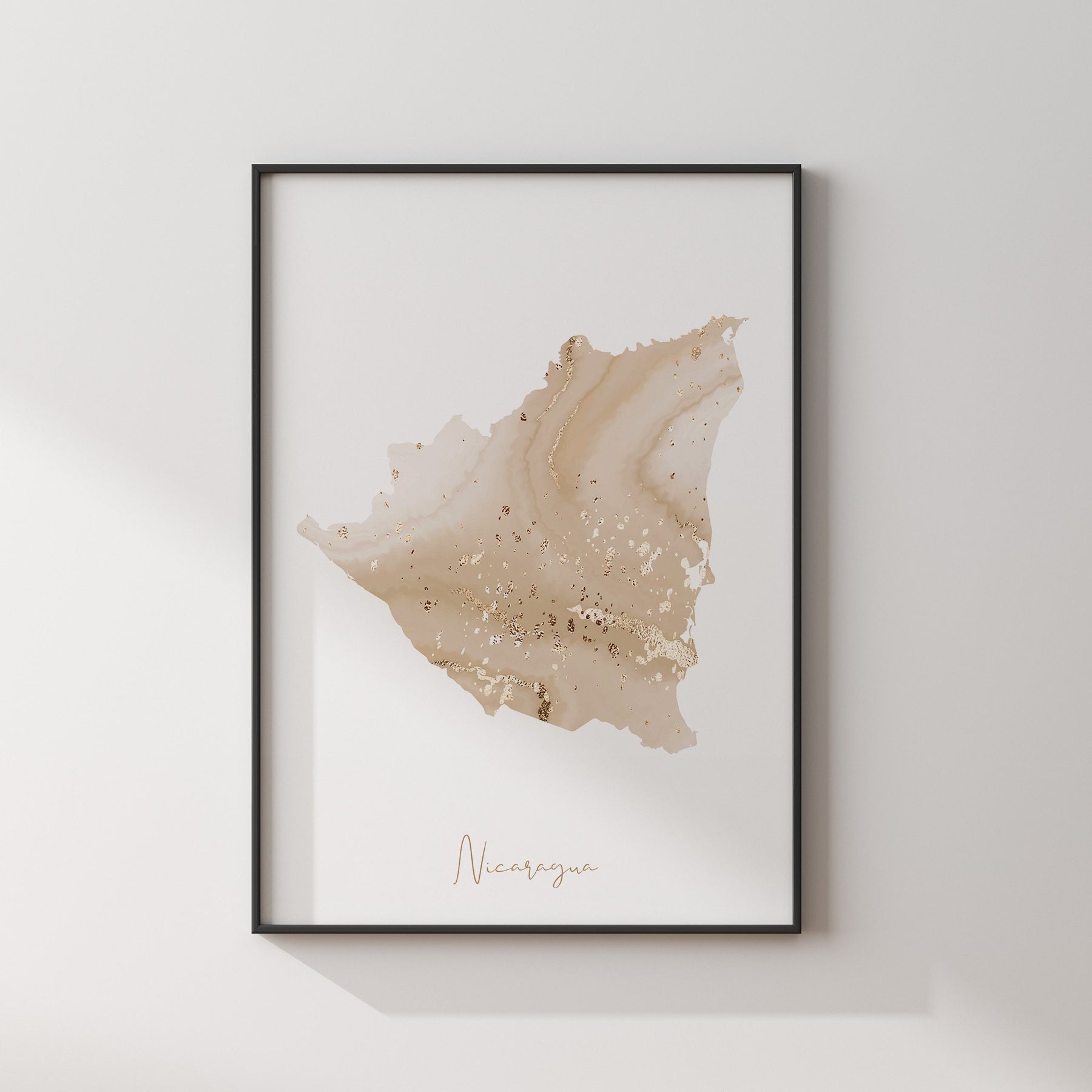 Unframed Nicaragua Map Wall Art Print (Please note the colours may vary slightly from those displayed on your screen)