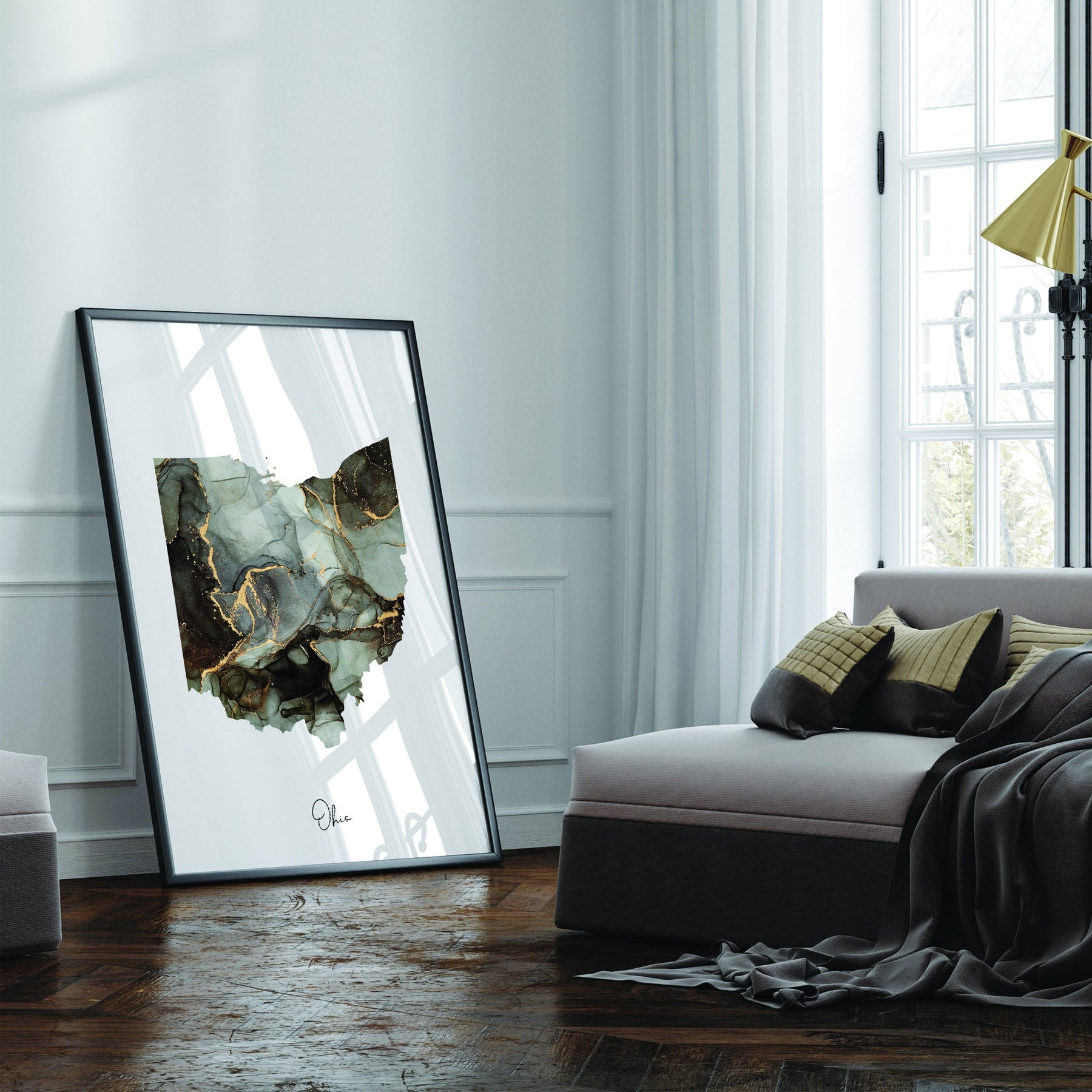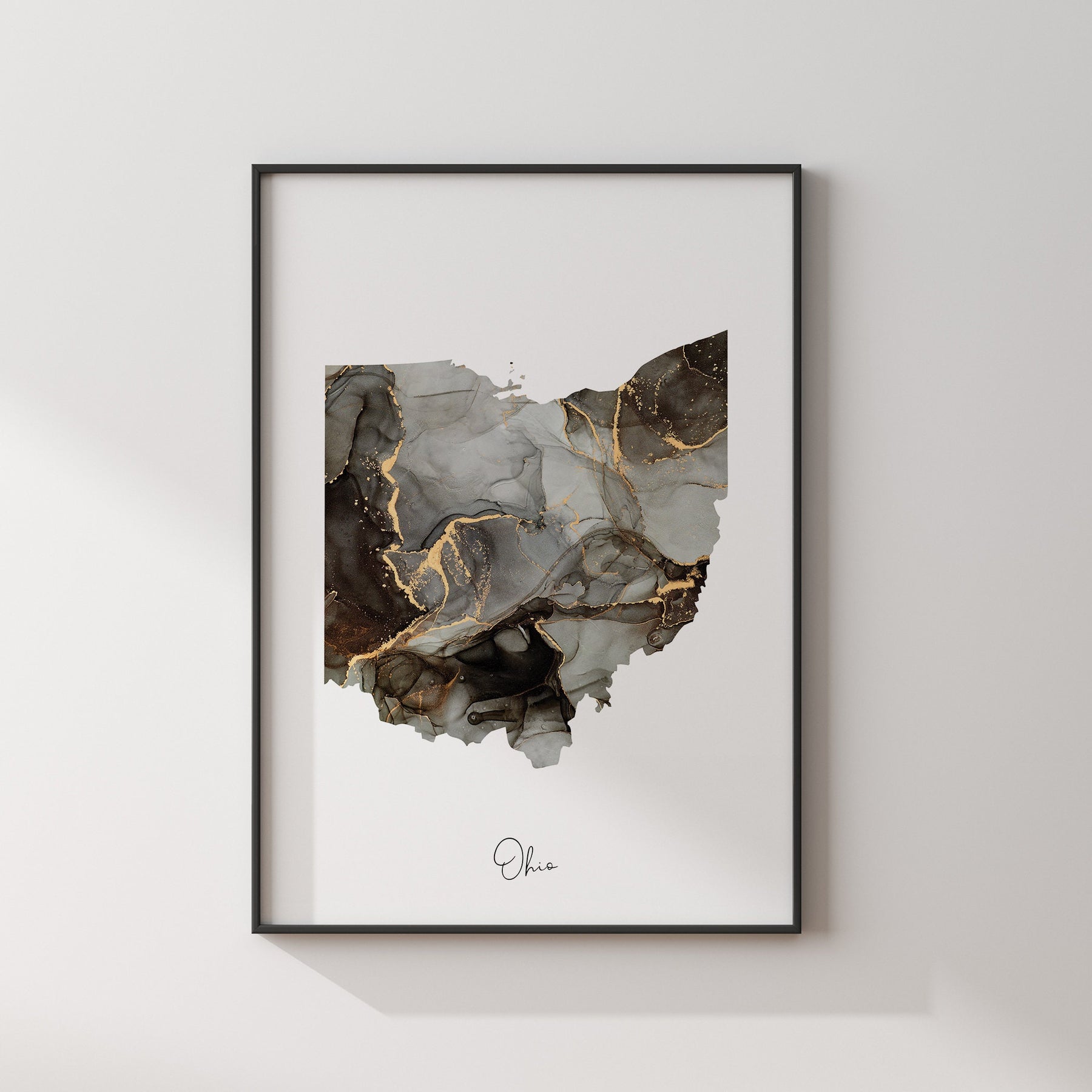 Ohio Map Black & Gold Wall Art Print US State | USA | United States of America