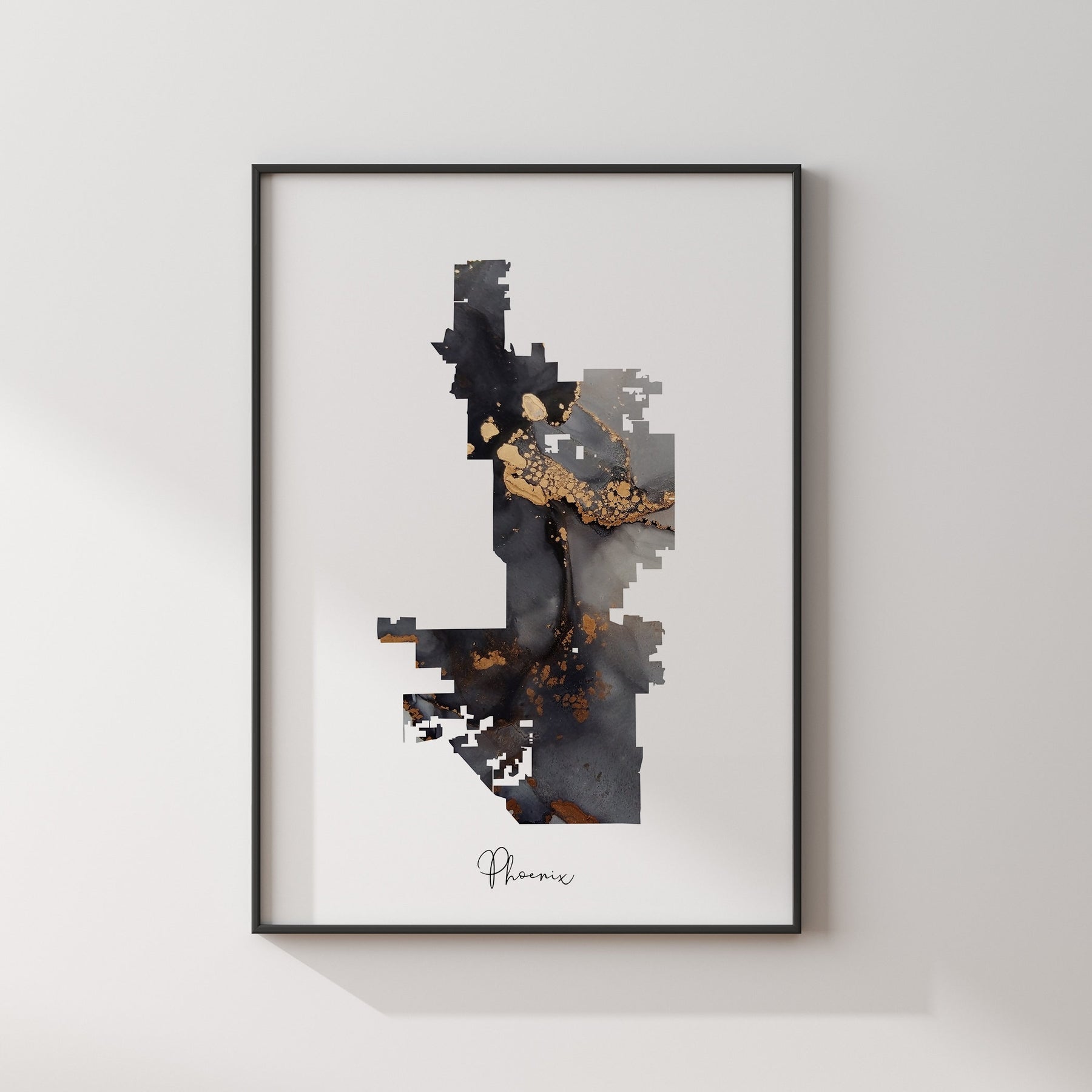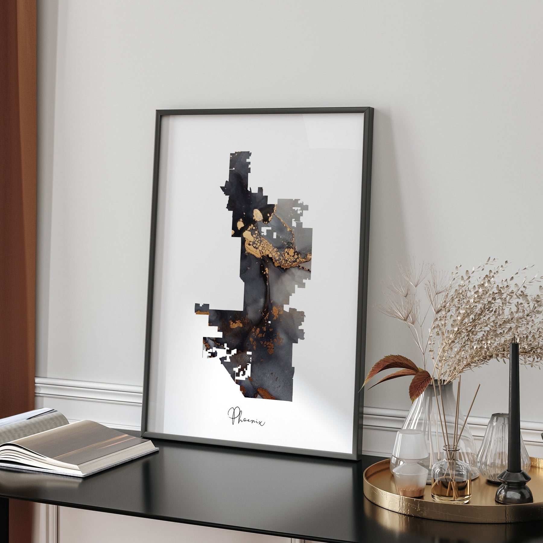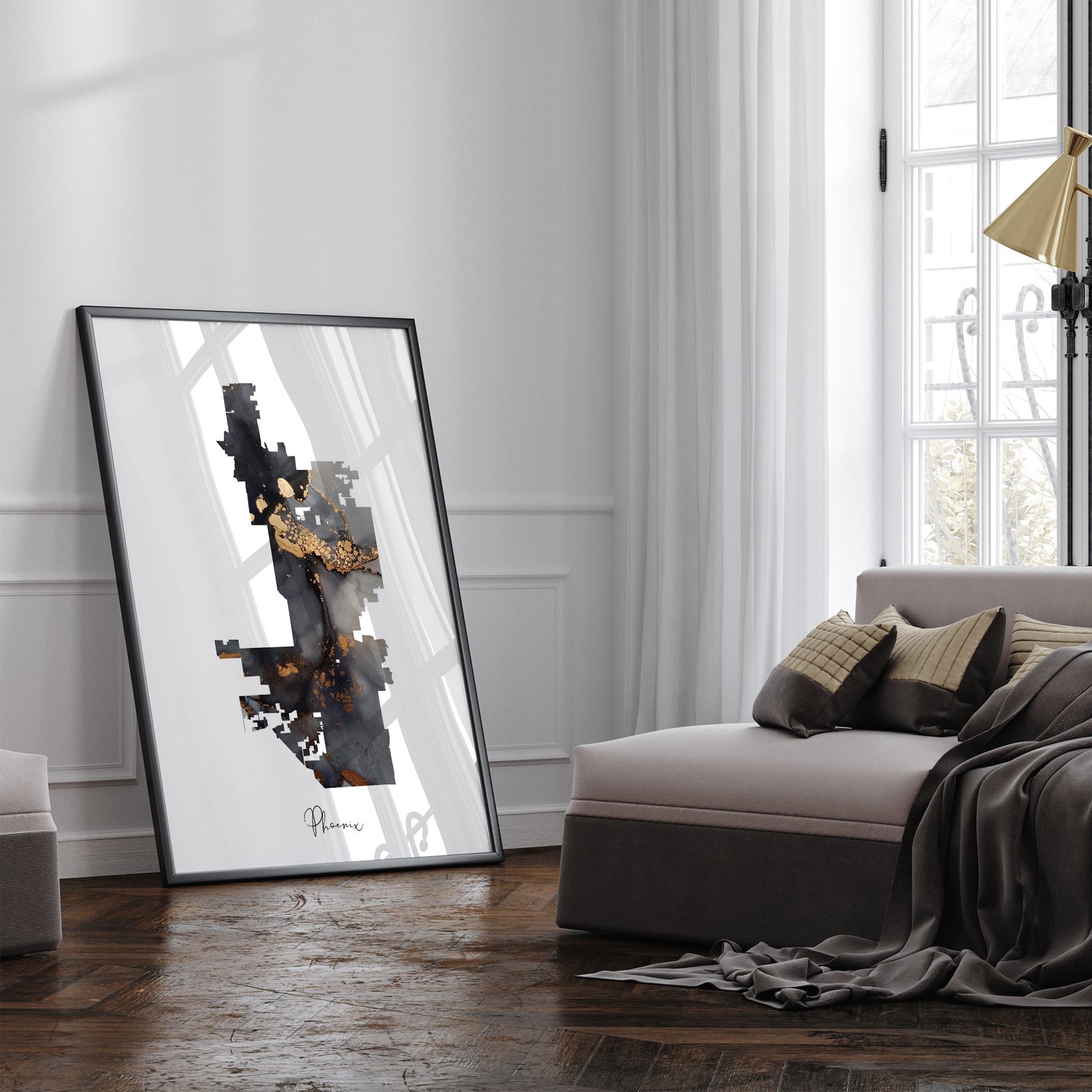 Phoenix Map Black & Gold Wall Art Print | Pennsylvania | USA | United States of America [EV]