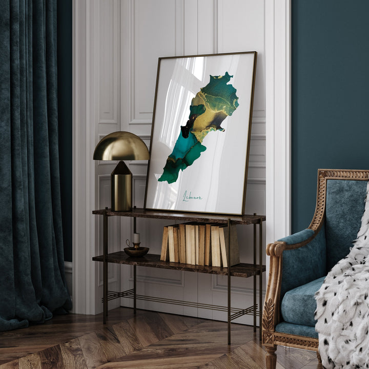 Lebanon Map Emerald Green and Gold Wall Art Print