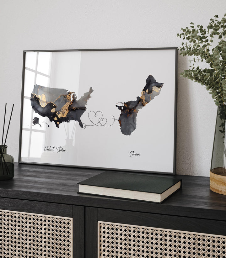 USA and Guam Map Black & Gold Travel Wall Art Print | United States | America | Travel Moving Home Gift