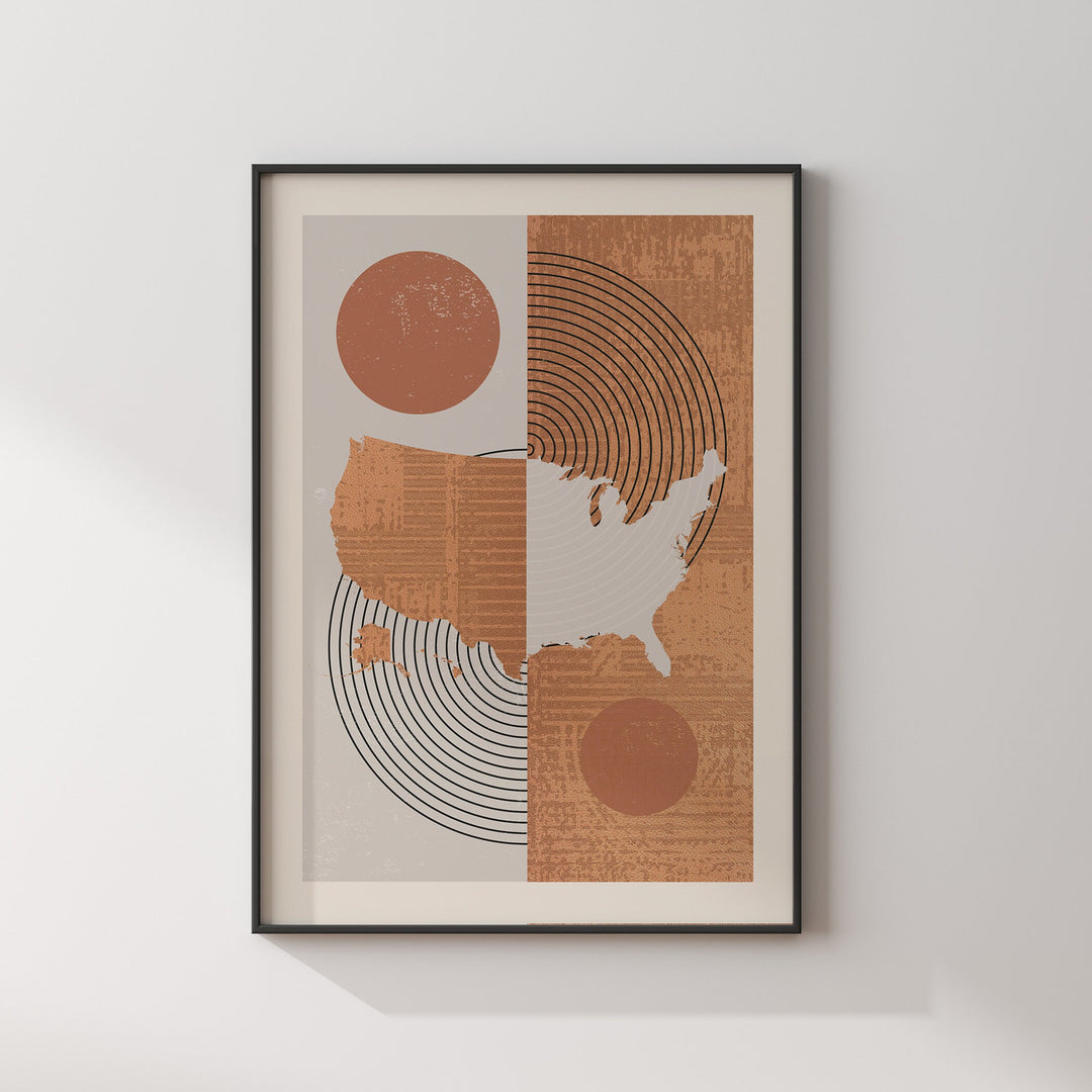 USA Map Wall Art Print | Boho Mid Century | United States of America