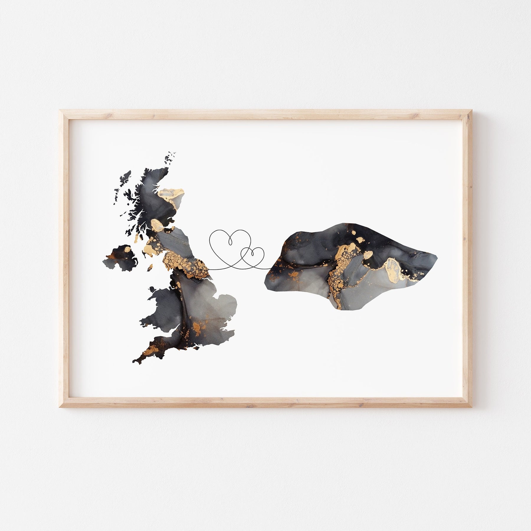 Britain and Singapore Map Black & Gold Travel Wall Art Print | United Kingdom | UK