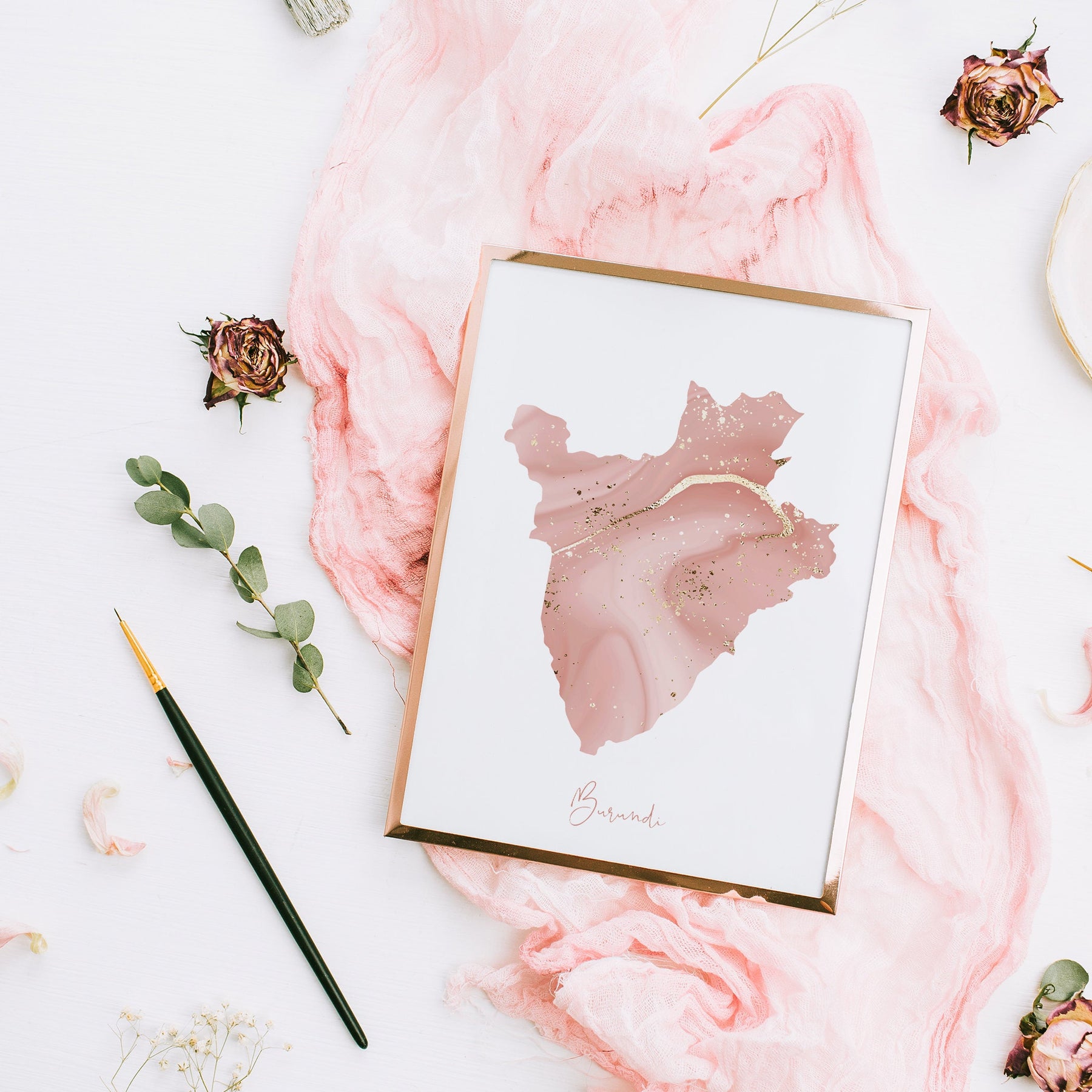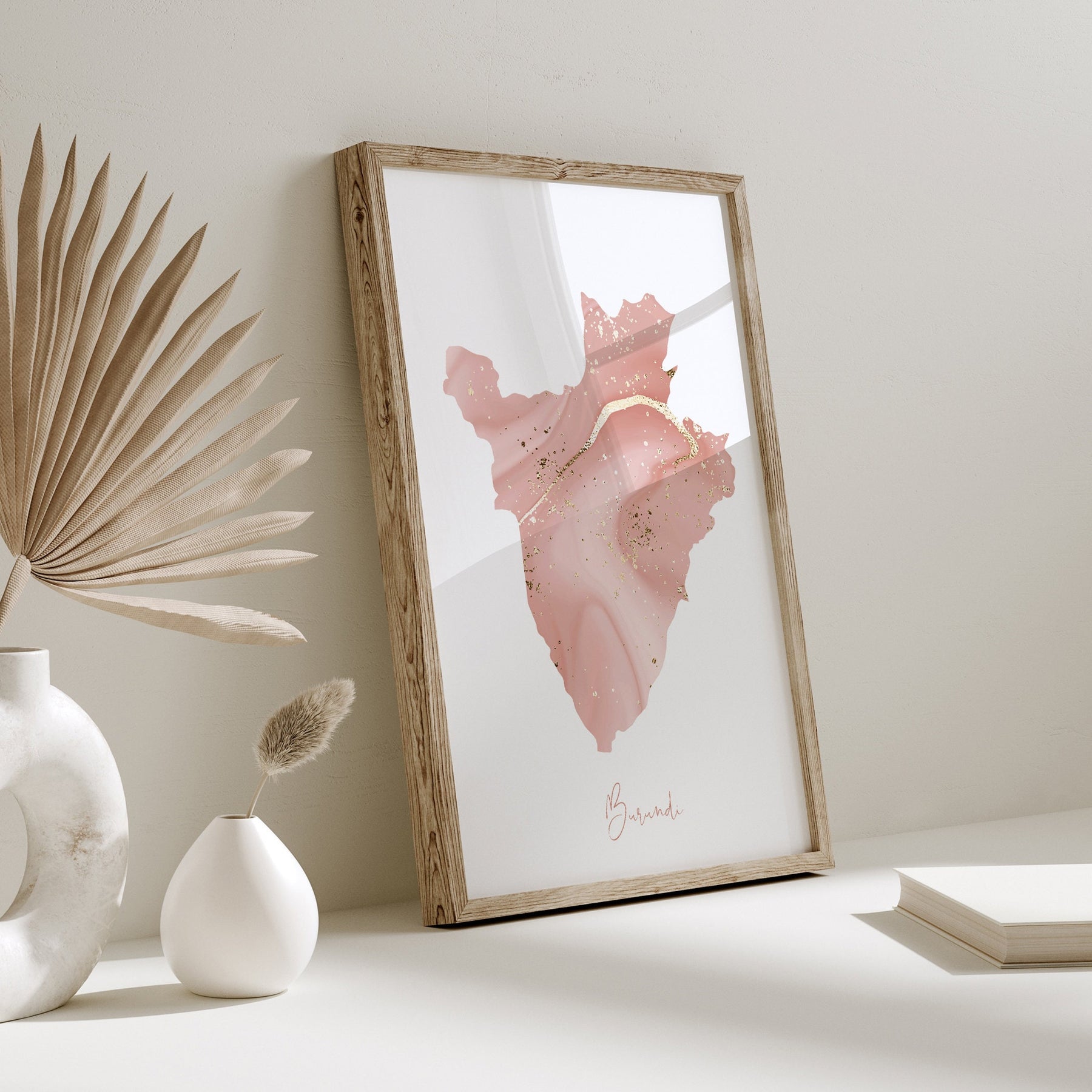 Unframed Pink & Gold Burundi Map Wall Art Print (Please note the colours may vary slightly from those displayed on your screen)