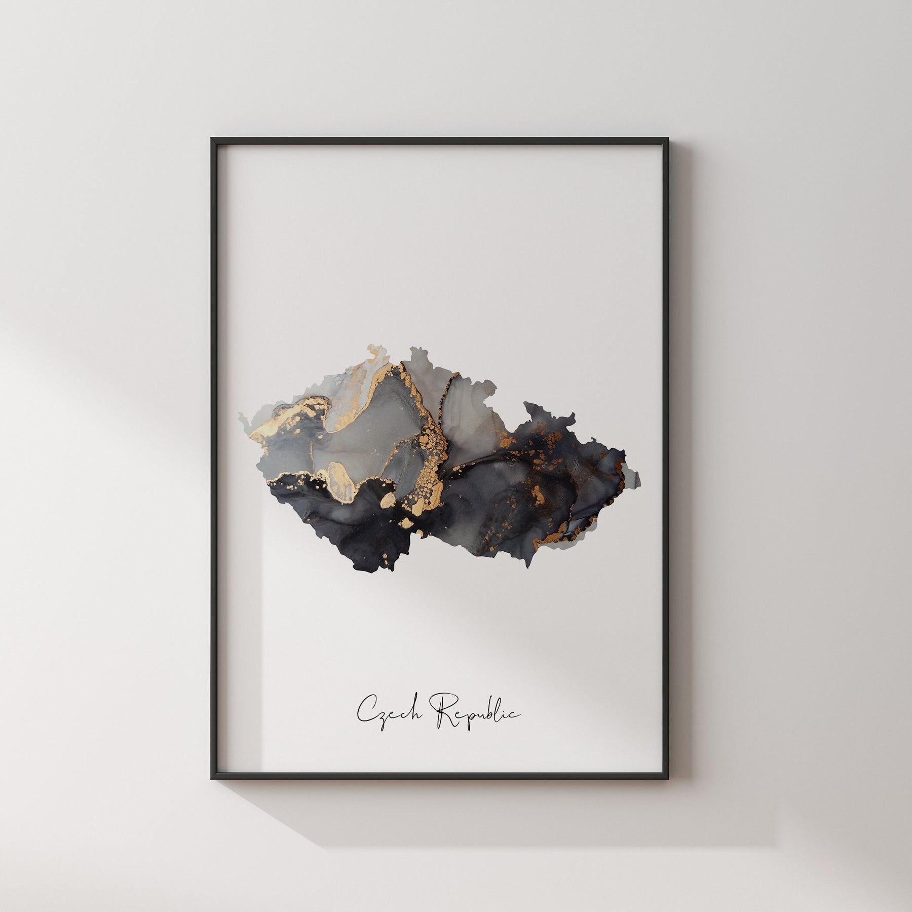 Czech Republic Map Black & Gold Wall Art Print [EV]