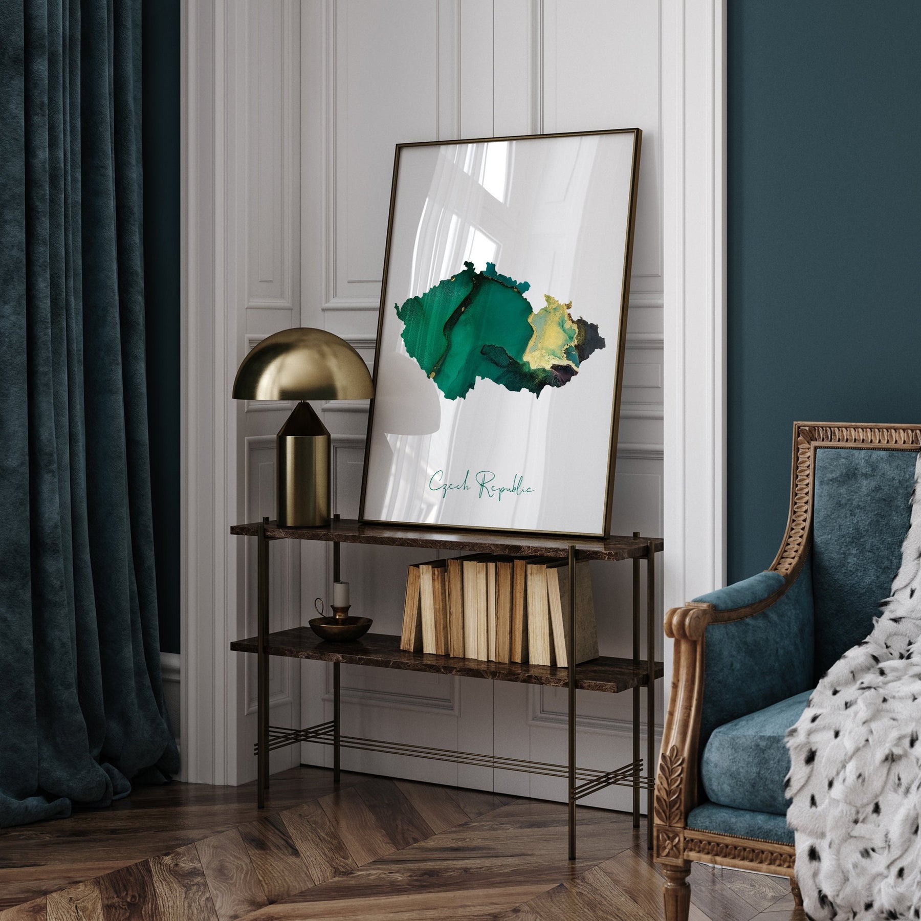 Unframed Emerald Green & Gold Czech Republic Map Wall Art Print (Please note the colours may vary slightly from those displayed on your screen)