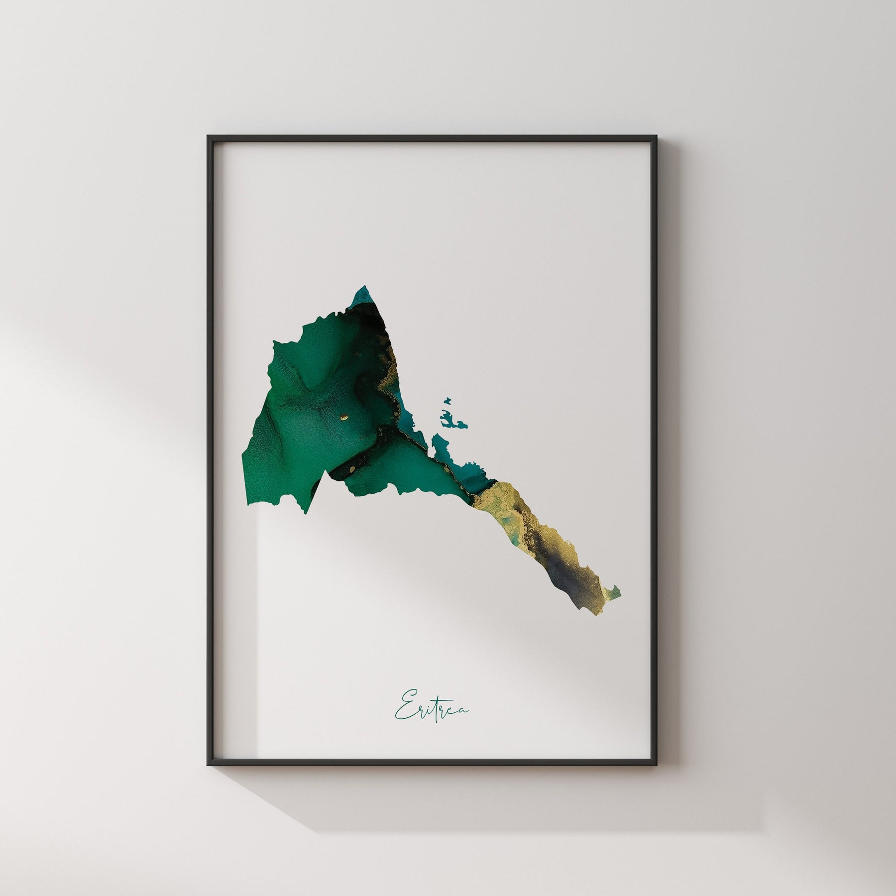 Unframed Emerald Green & Gold Eritrea Map Wall Art Print (Please note the colours may vary slightly from those displayed on your screen)