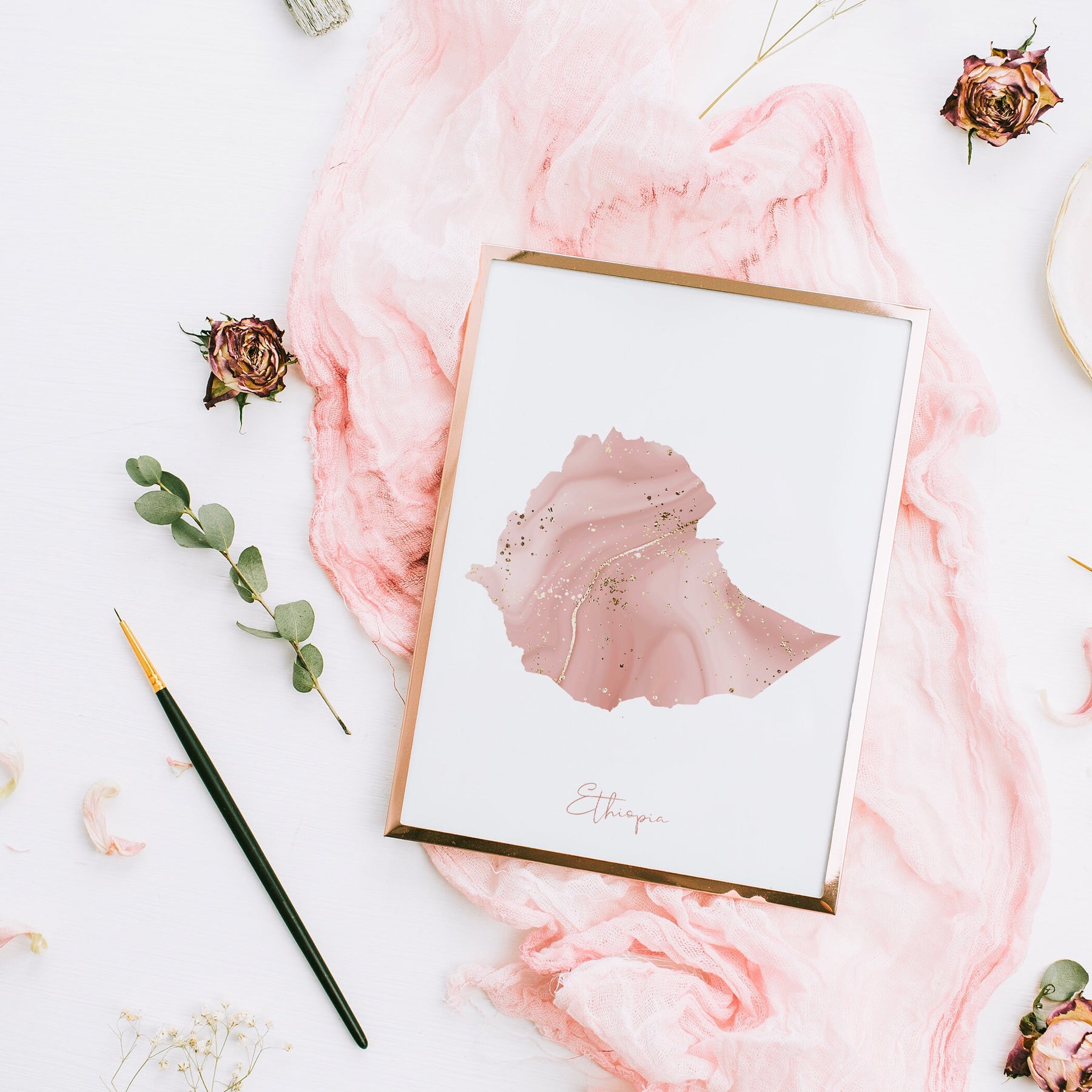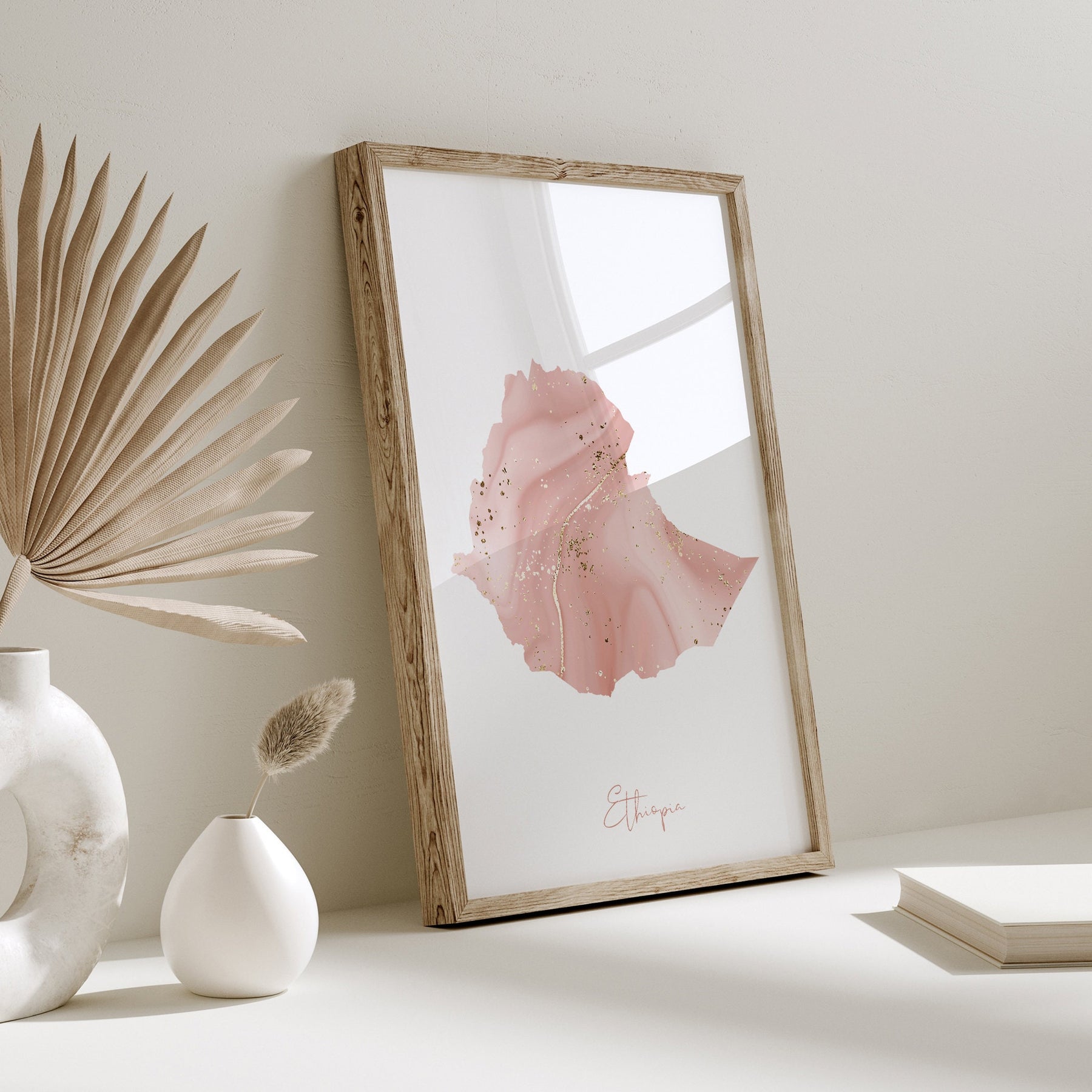 Unframed Pink & Gold Ethiopia Map Wall Art Print (Please note the colours may vary slightly from those displayed on your screen)