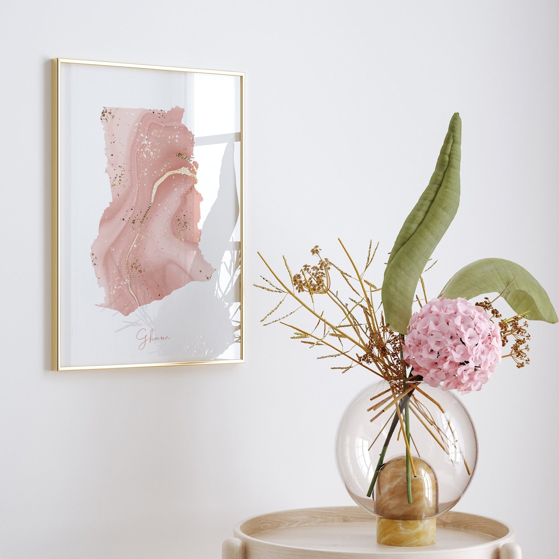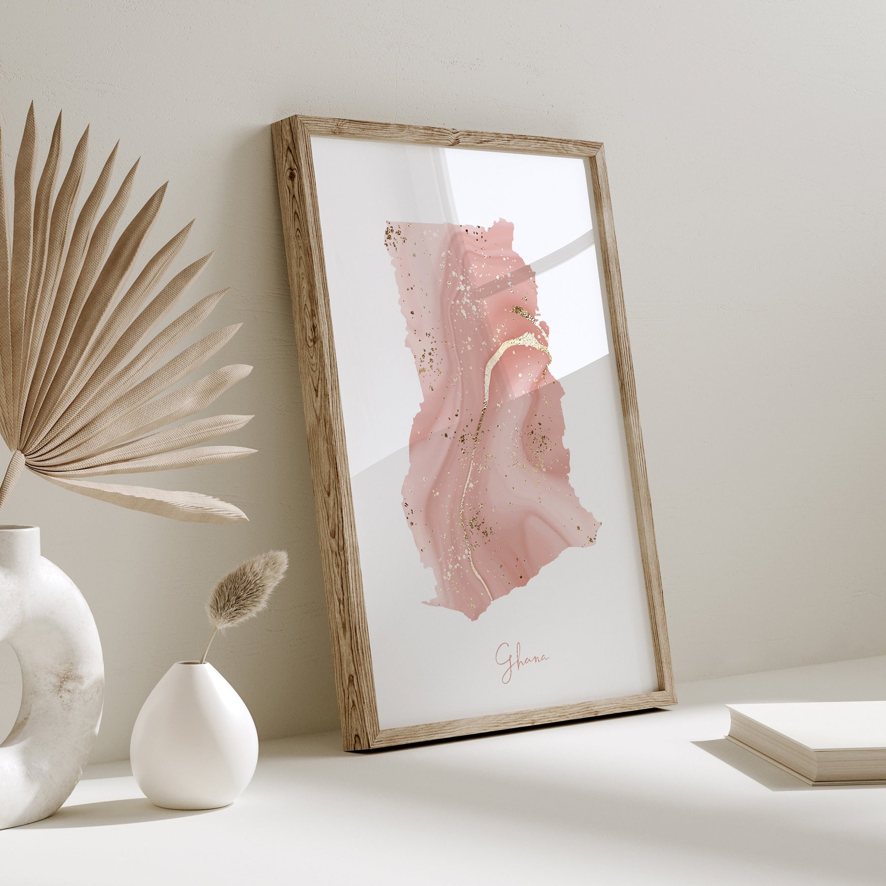 Unframed Pink & Gold Ghana Map Wall Art Print (Please note the colours may vary slightly from those displayed on your screen)