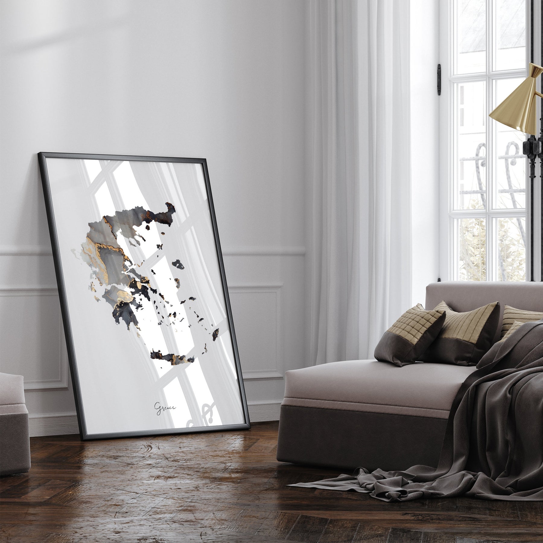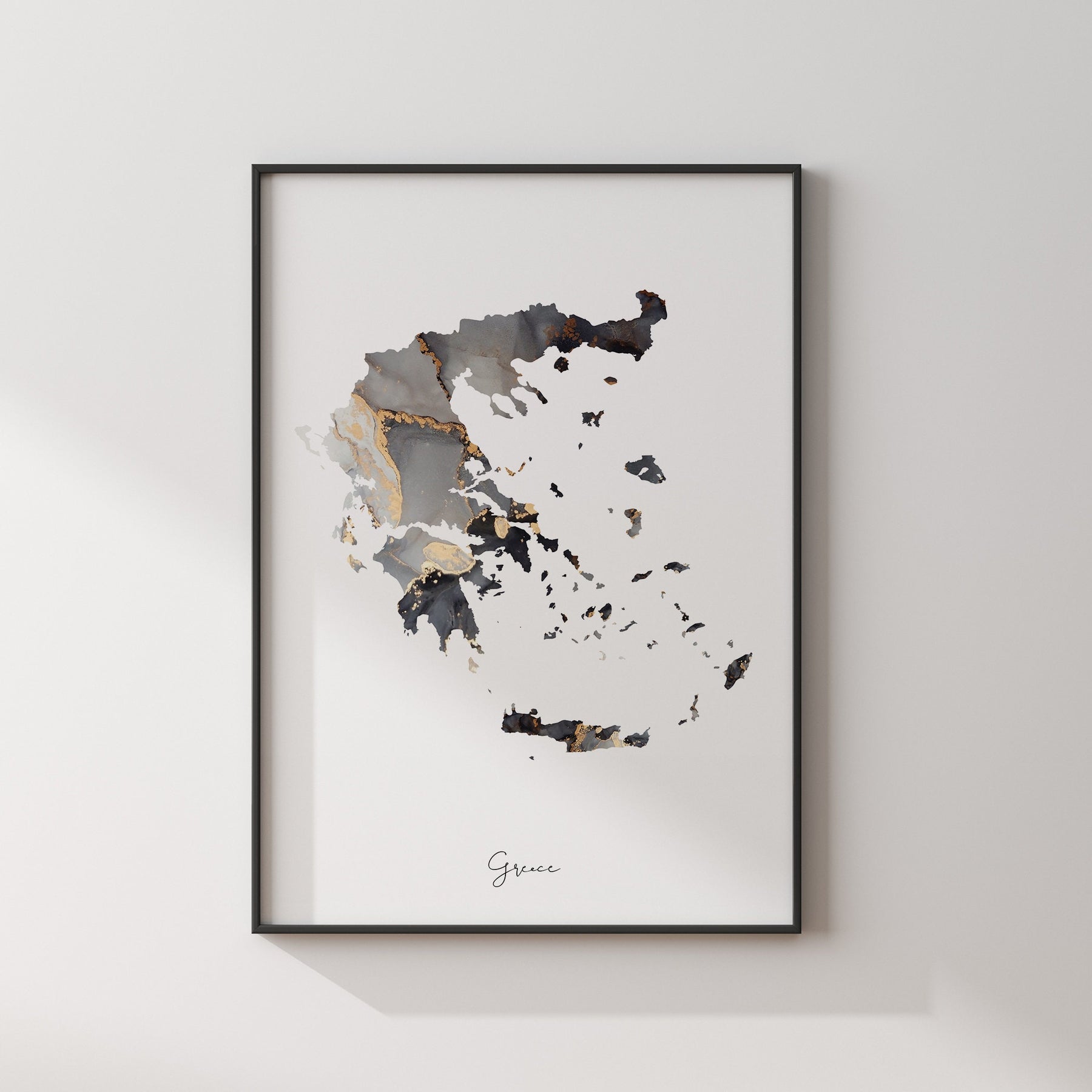 Unframed Greece Map Wall Art Print [New Enhanced Quality Version]