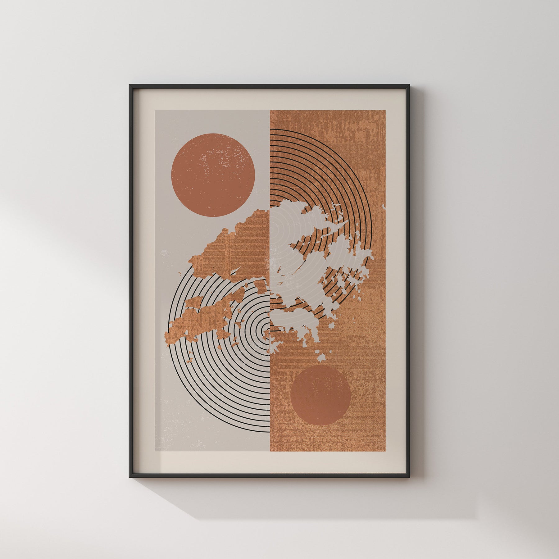 Hong Kong Map Wall Art Print | Boho Mid Century