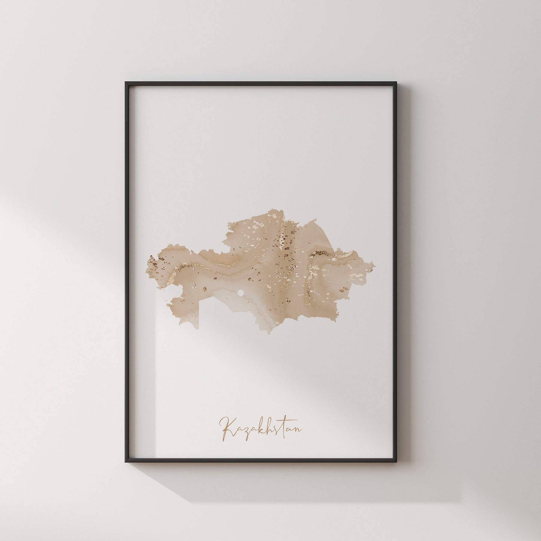 Unframed Kazakhstan Map Wall Art Print (Please note the colours may vary slightly from those displayed on your screen)