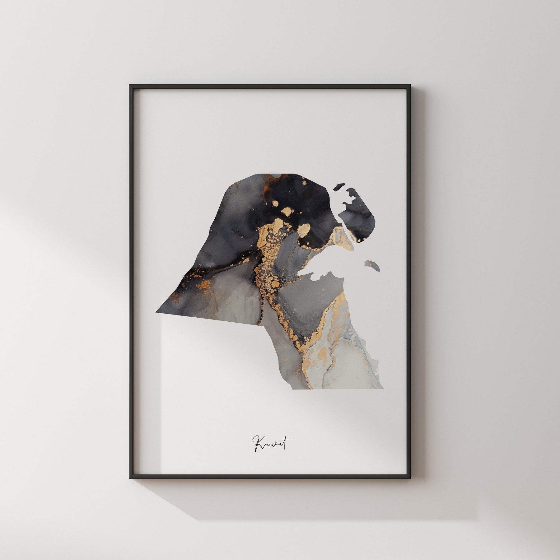 Unframed Kuwait Map Wall Art Print [New Enhanced Quality Version]