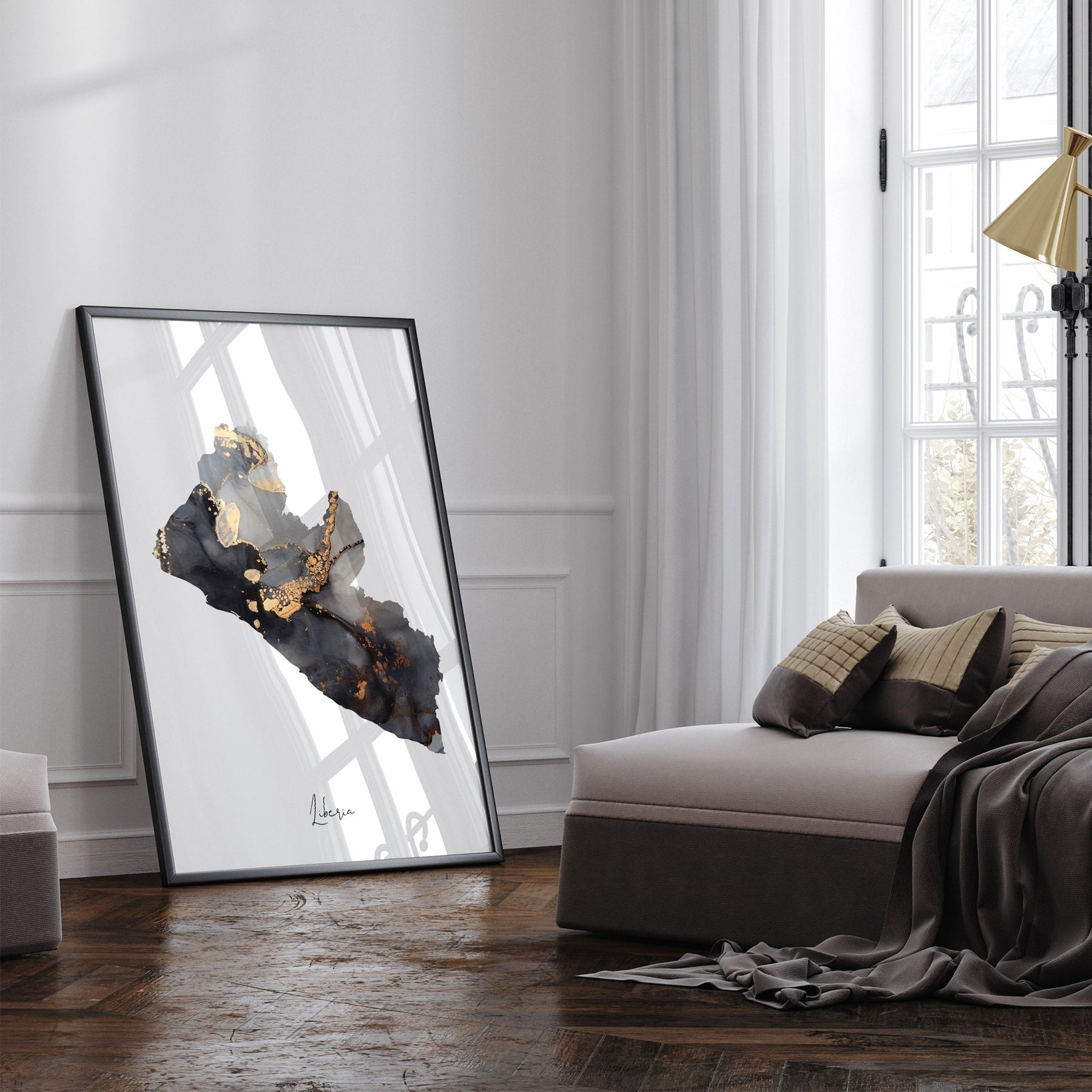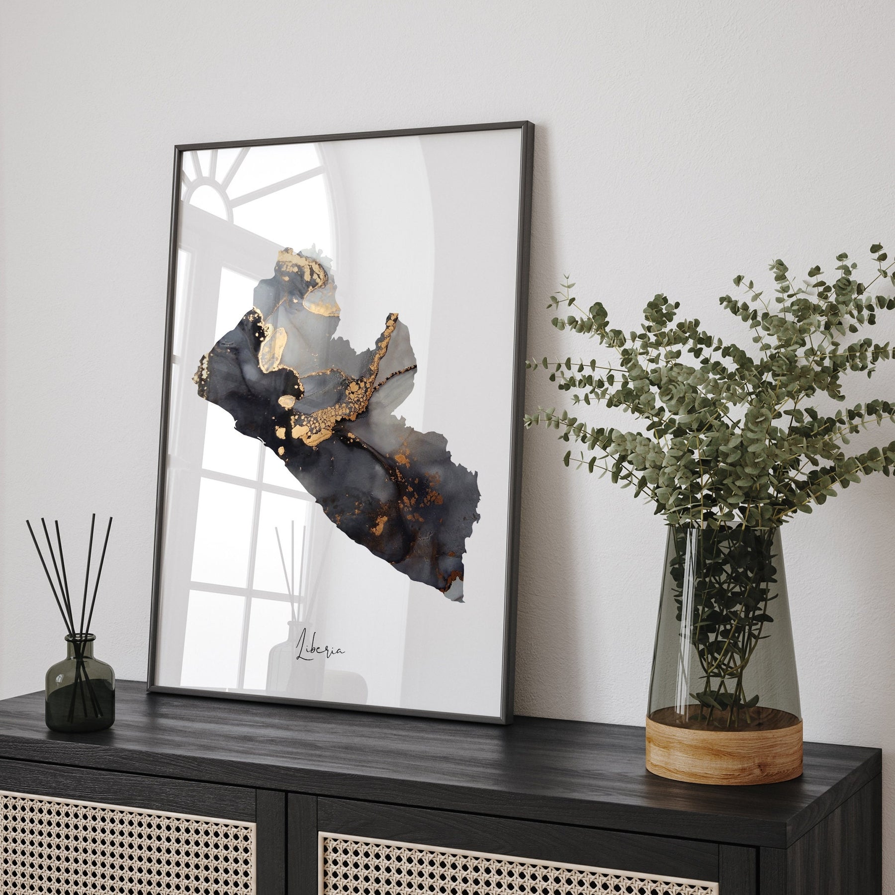 Liberia Map Black & Gold Wall Art Print [EV]