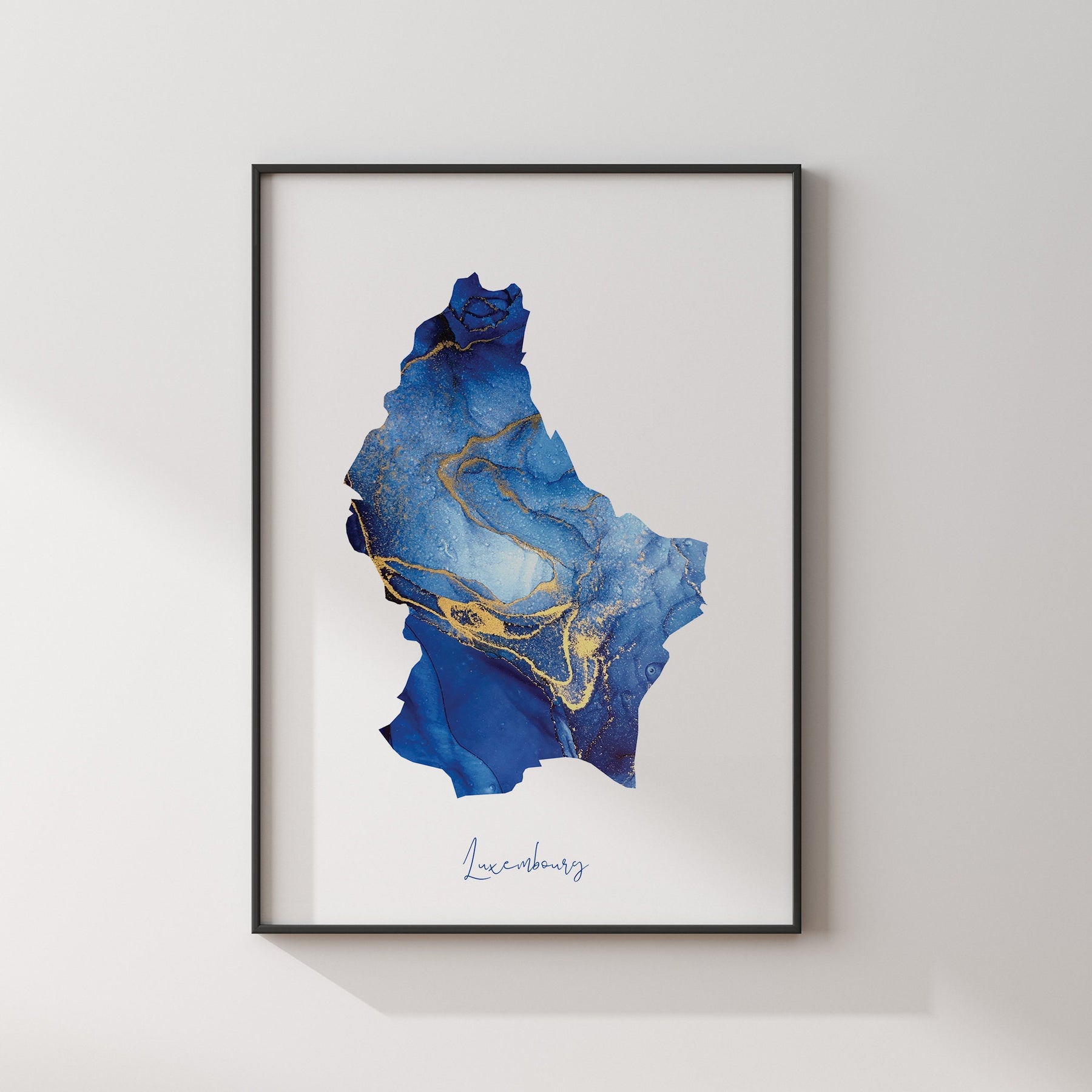 Unframed Blue & Gold Luxembourg Map Wall Art Print (Please note the colours may vary slightly from those displayed on your screen)