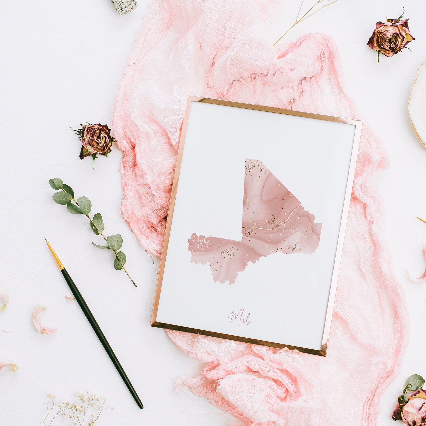 Unframed Pink & Gold Mali Map Wall Art Print (Please note the colours may vary slightly from those displayed on your screen)