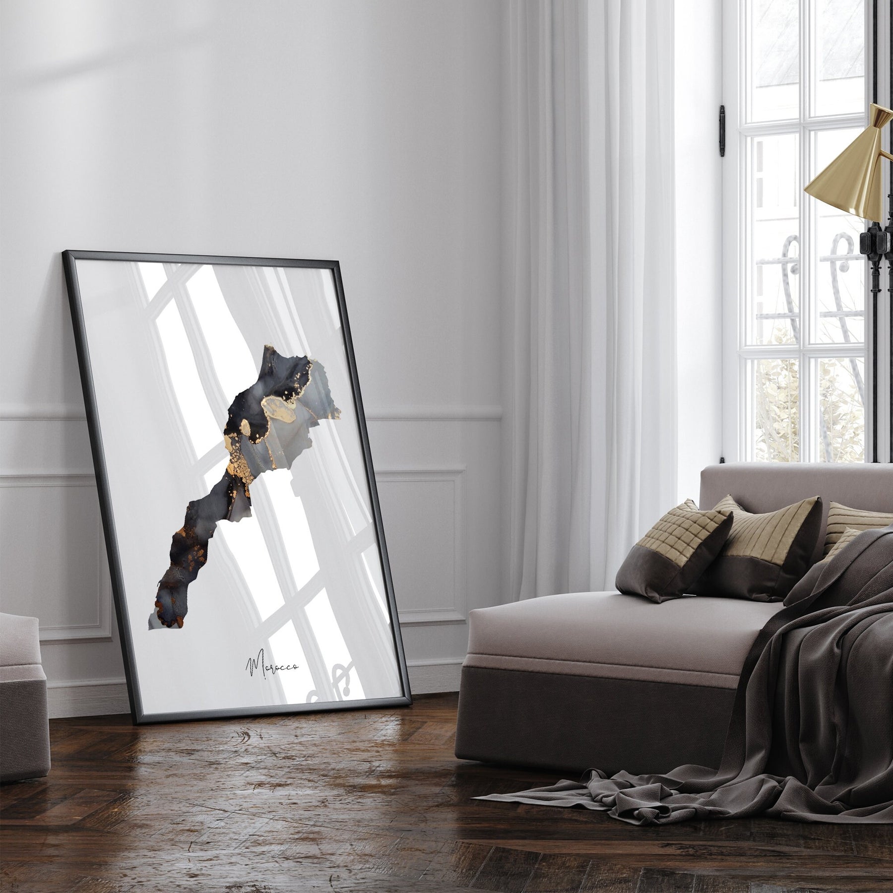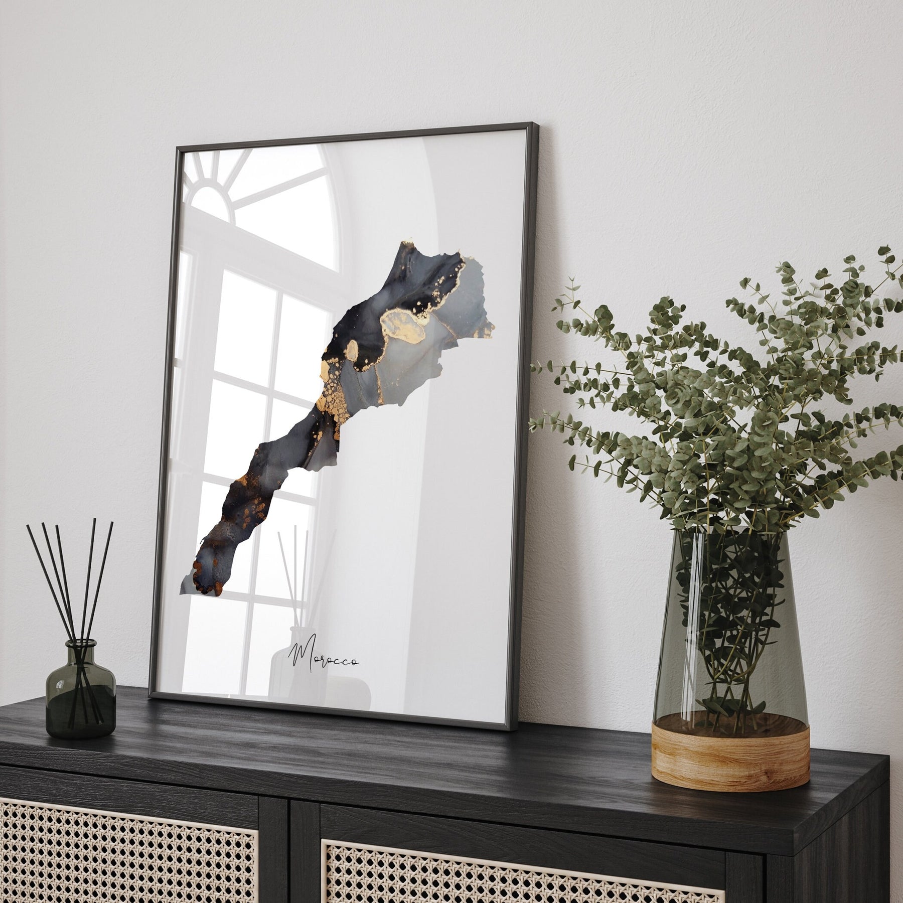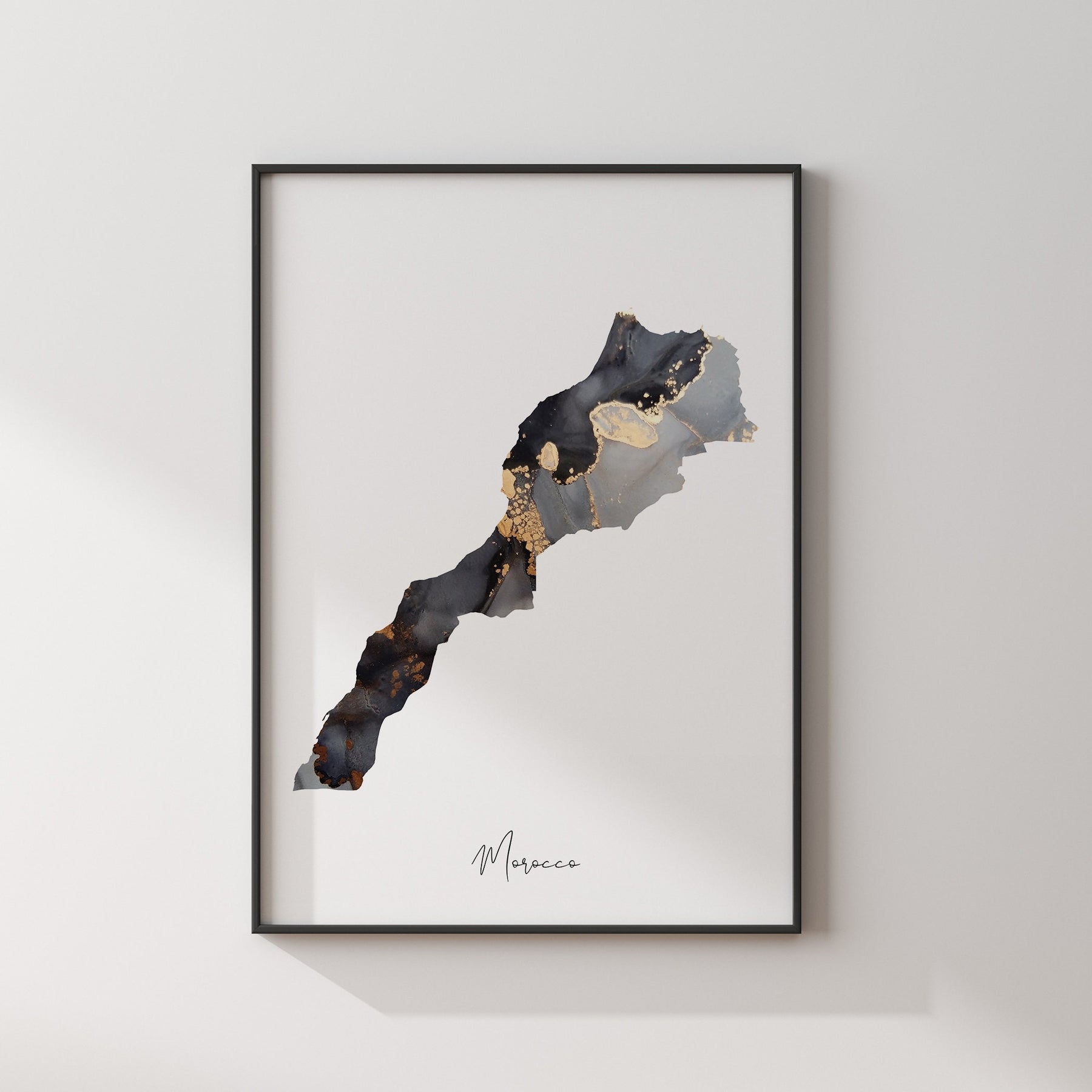 Morocco Map Black & Gold Wall Art Print [EV]