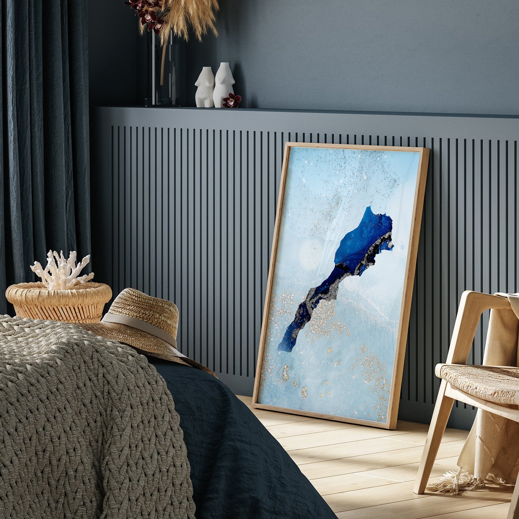Morocco Map Shades of Blue & Silver Wall Art Print