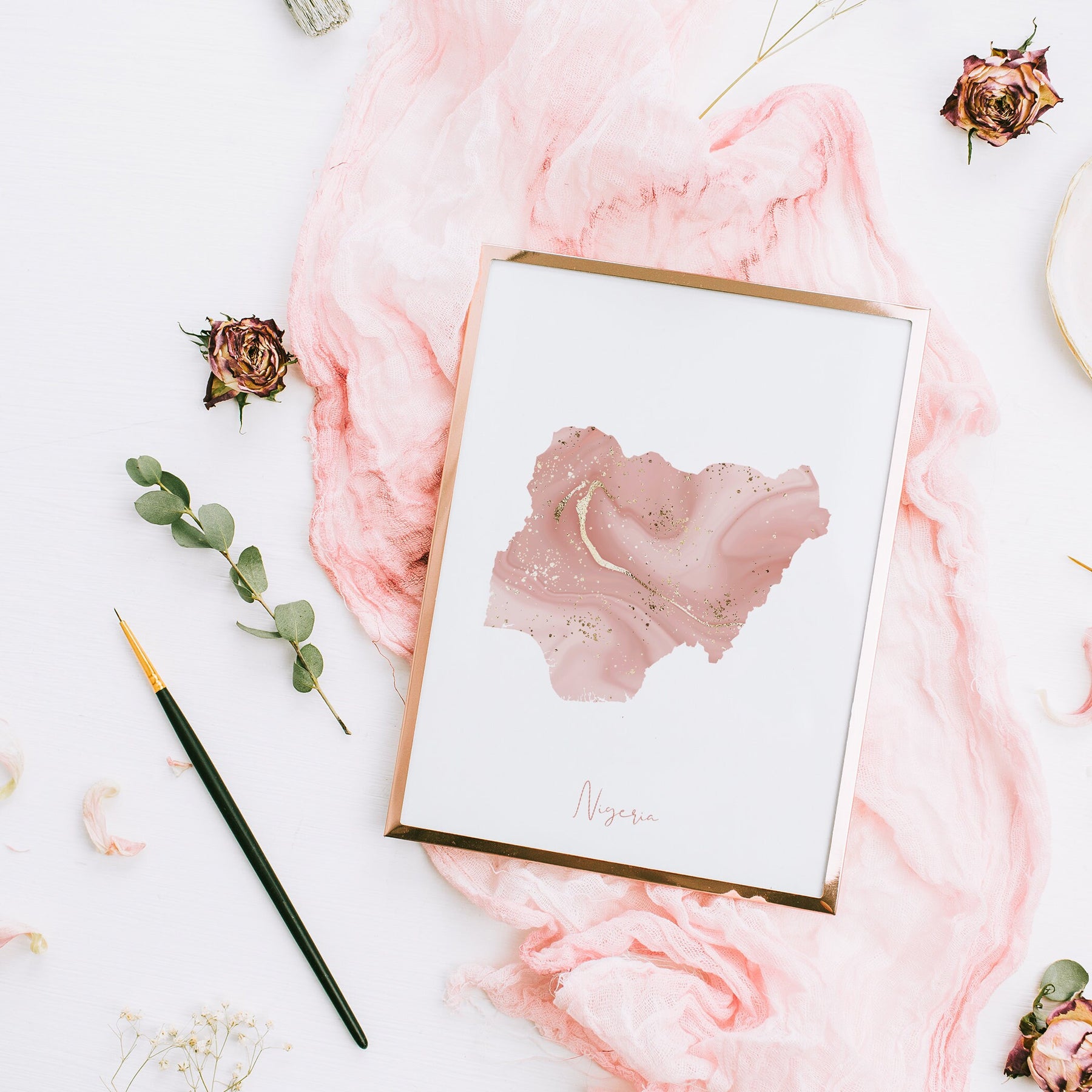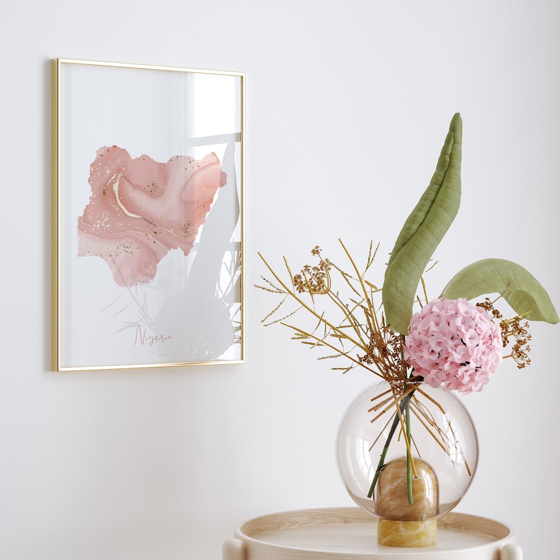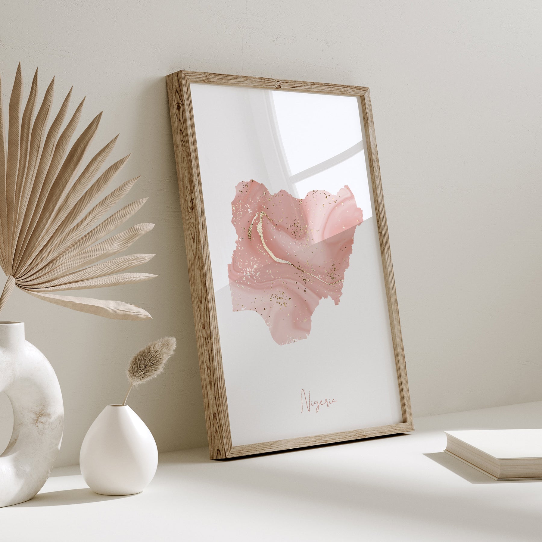 Unframed Pink & Gold Nigeria Map Wall Art Print (Please note the colours may vary slightly from those displayed on your screen)