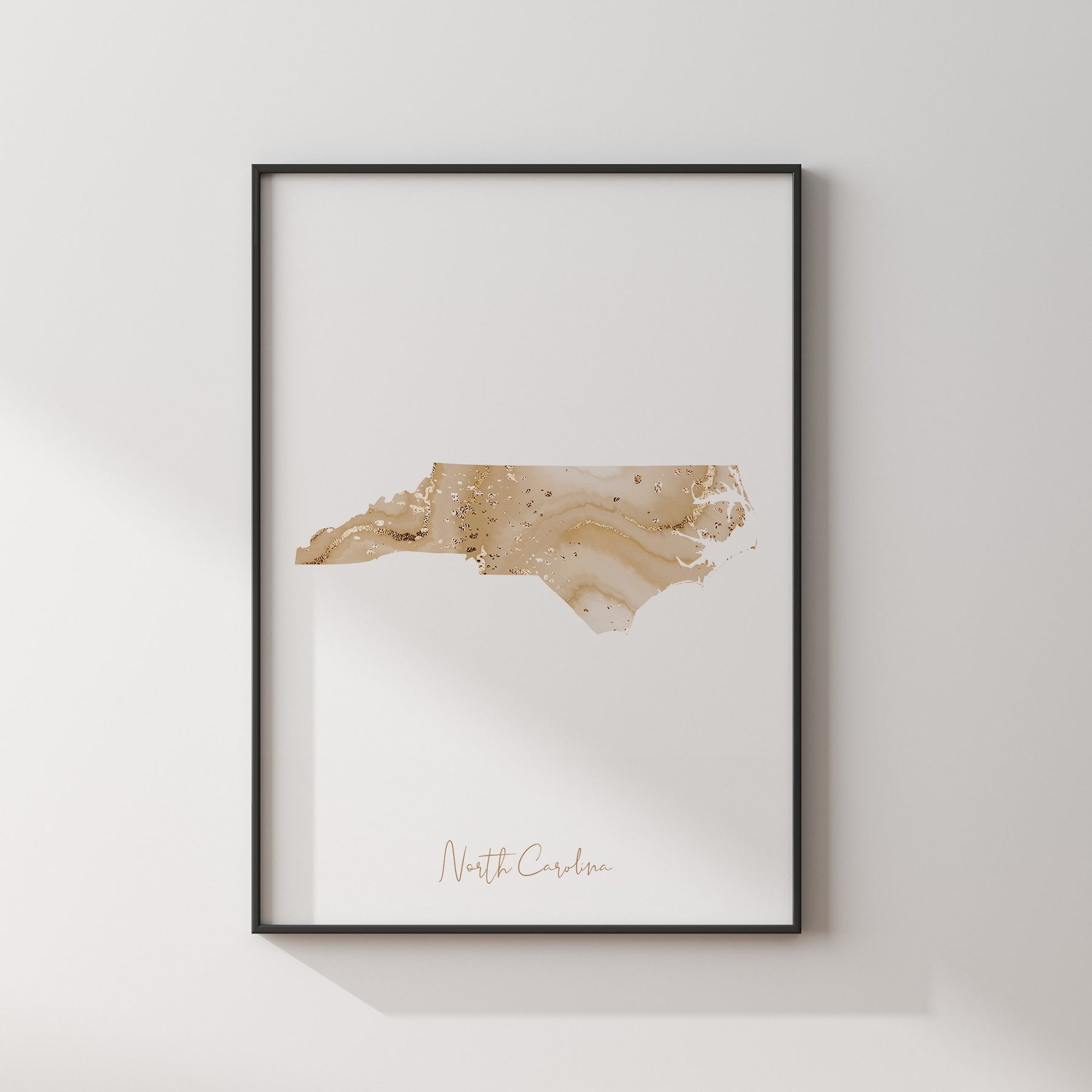 North Carolina Map Beige & Gold Wall Art Print | US State | USA | United States of America