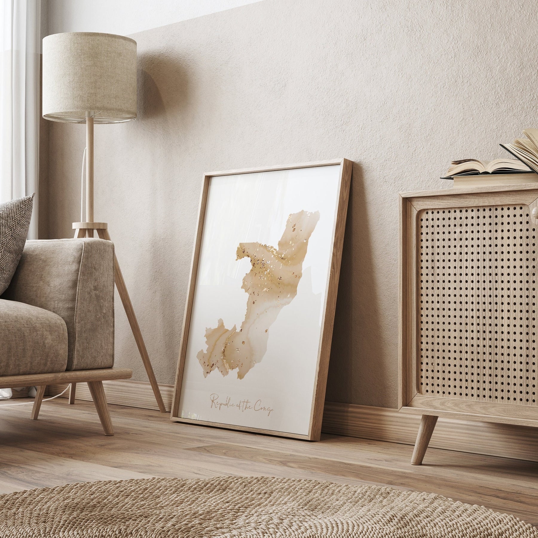 Republic of the Congo Map Beige & Gold Wall Art Print