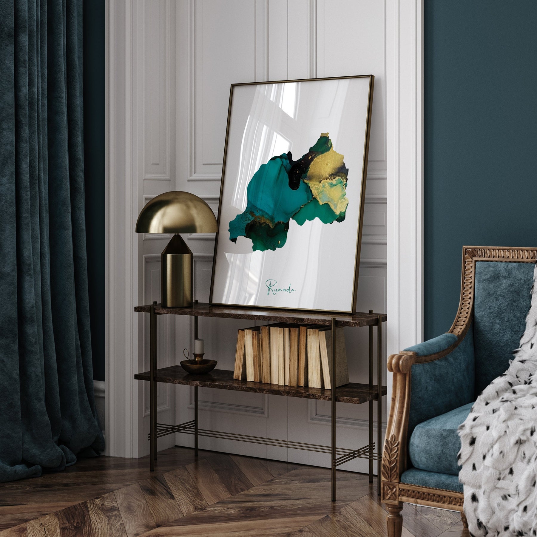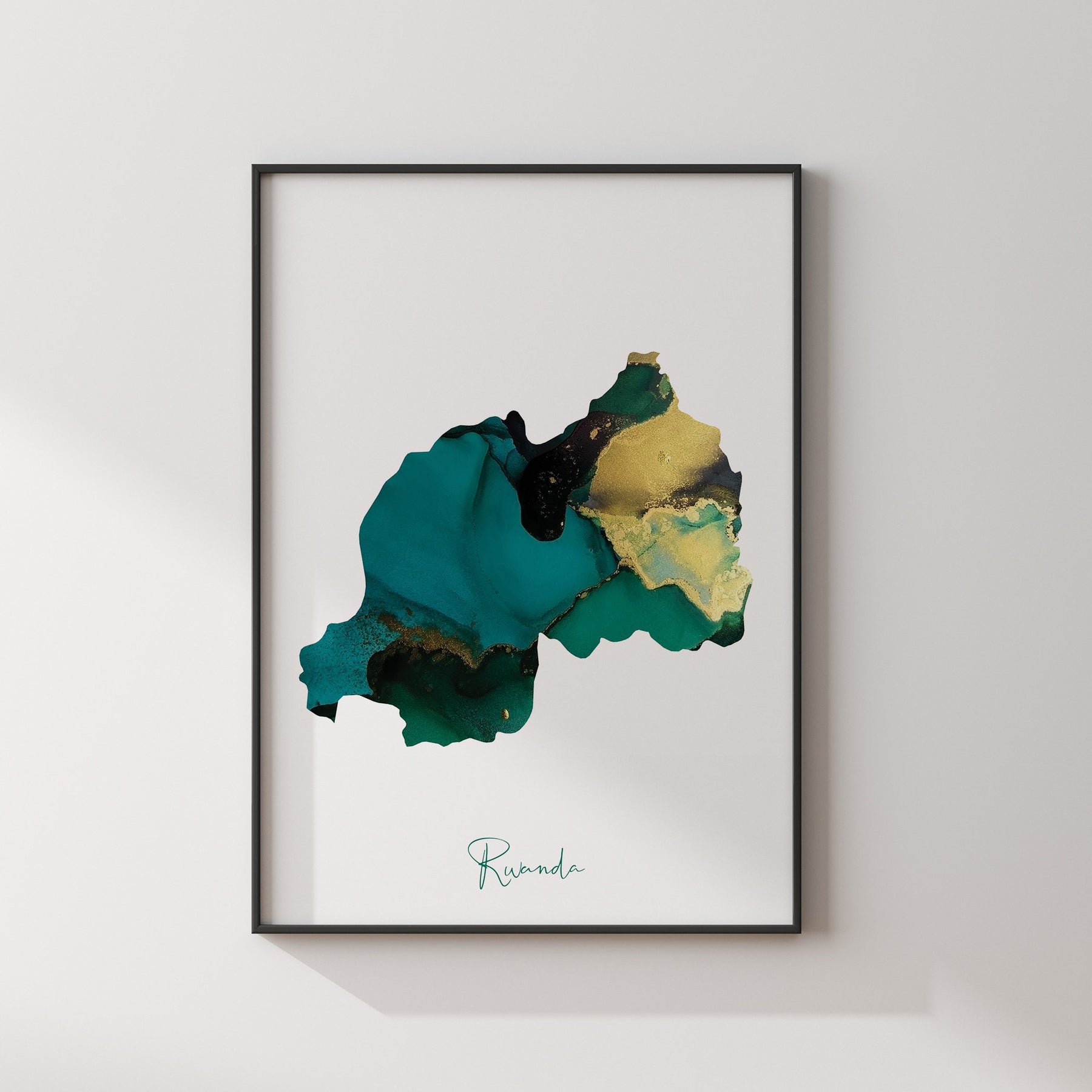 Unframed Emerald Green & Gold Rwanda Map Wall Art Print (Please note the colours may vary slightly from those displayed on your screen)