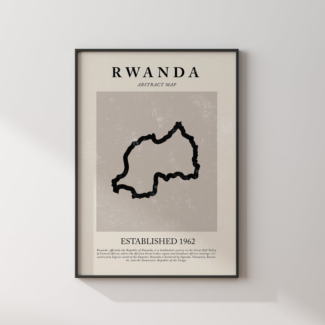 Abstract Rwanda Map Vintage Wall Art Print Picasso + Matisse Inspired Travel Poster OE