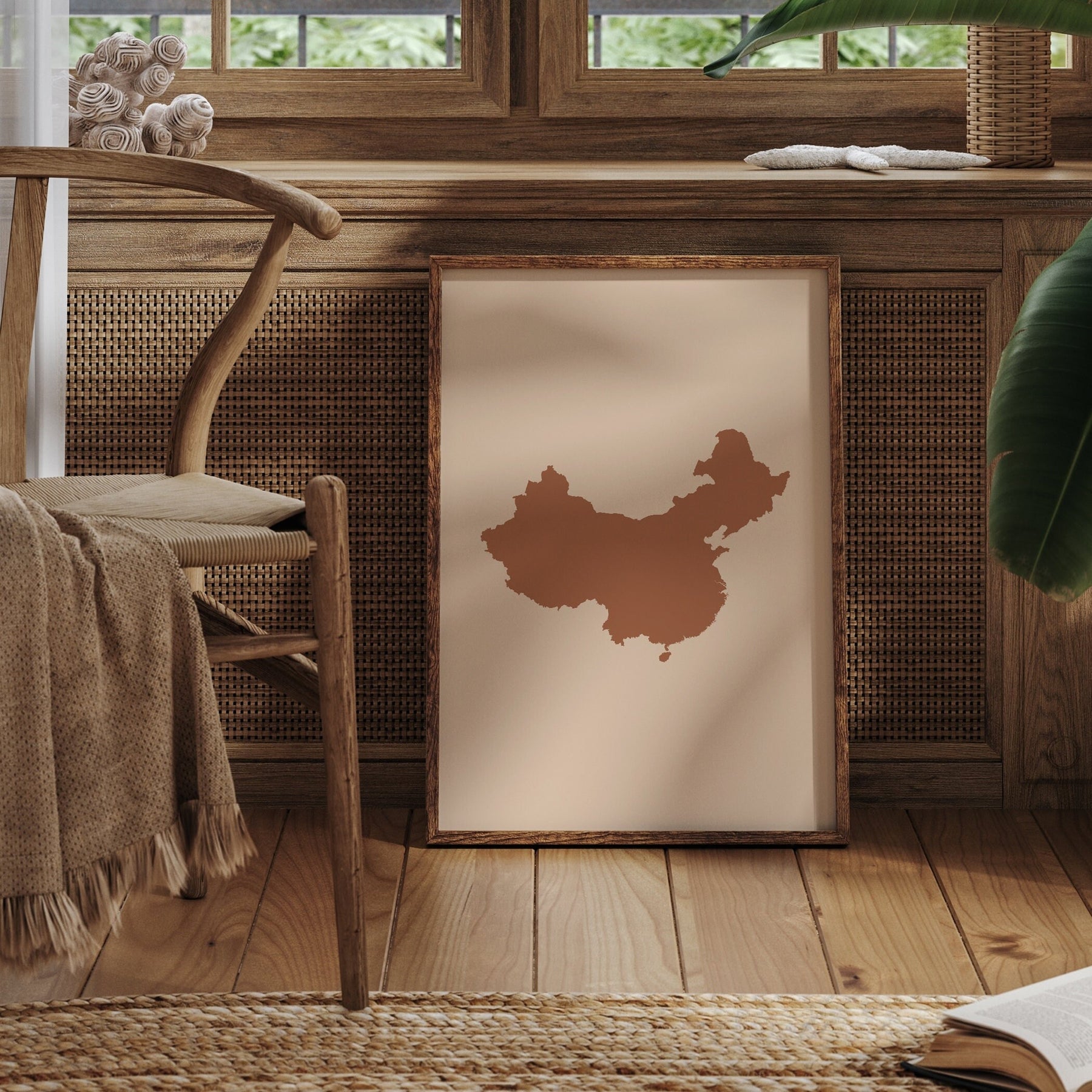 China Map Boho Wall Art Print Mid Century Travel Poster