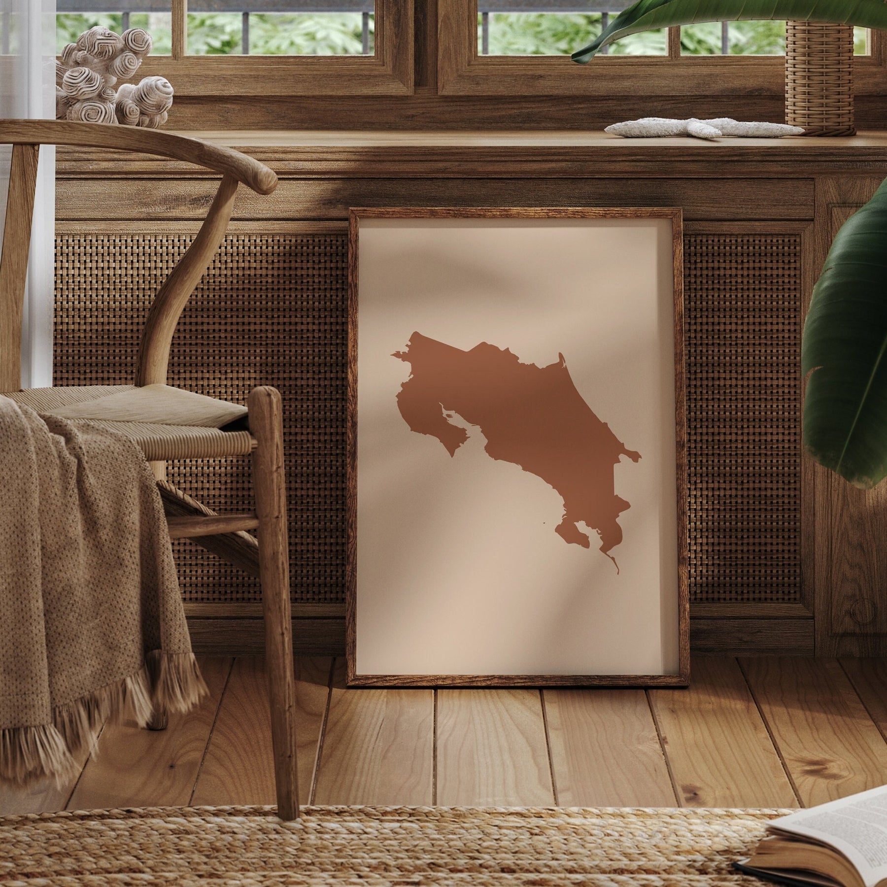Unframed Costa Rica Map wall art print in a boho mid century design.