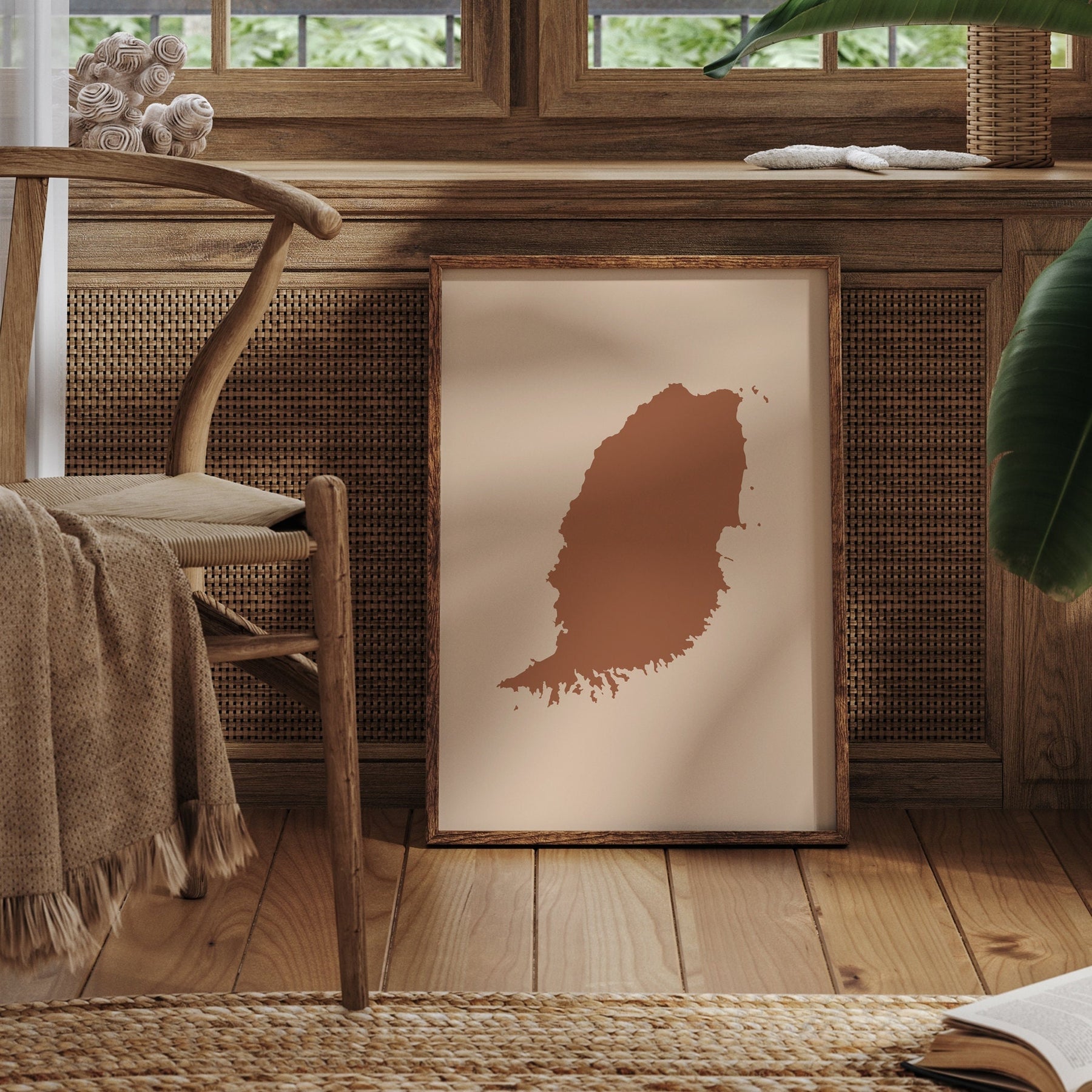 Grenada Map Boho Wall Art Print Mid Century Travel Poster