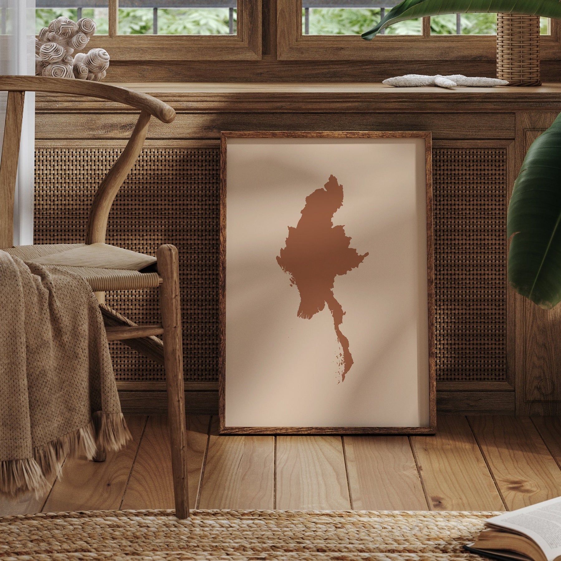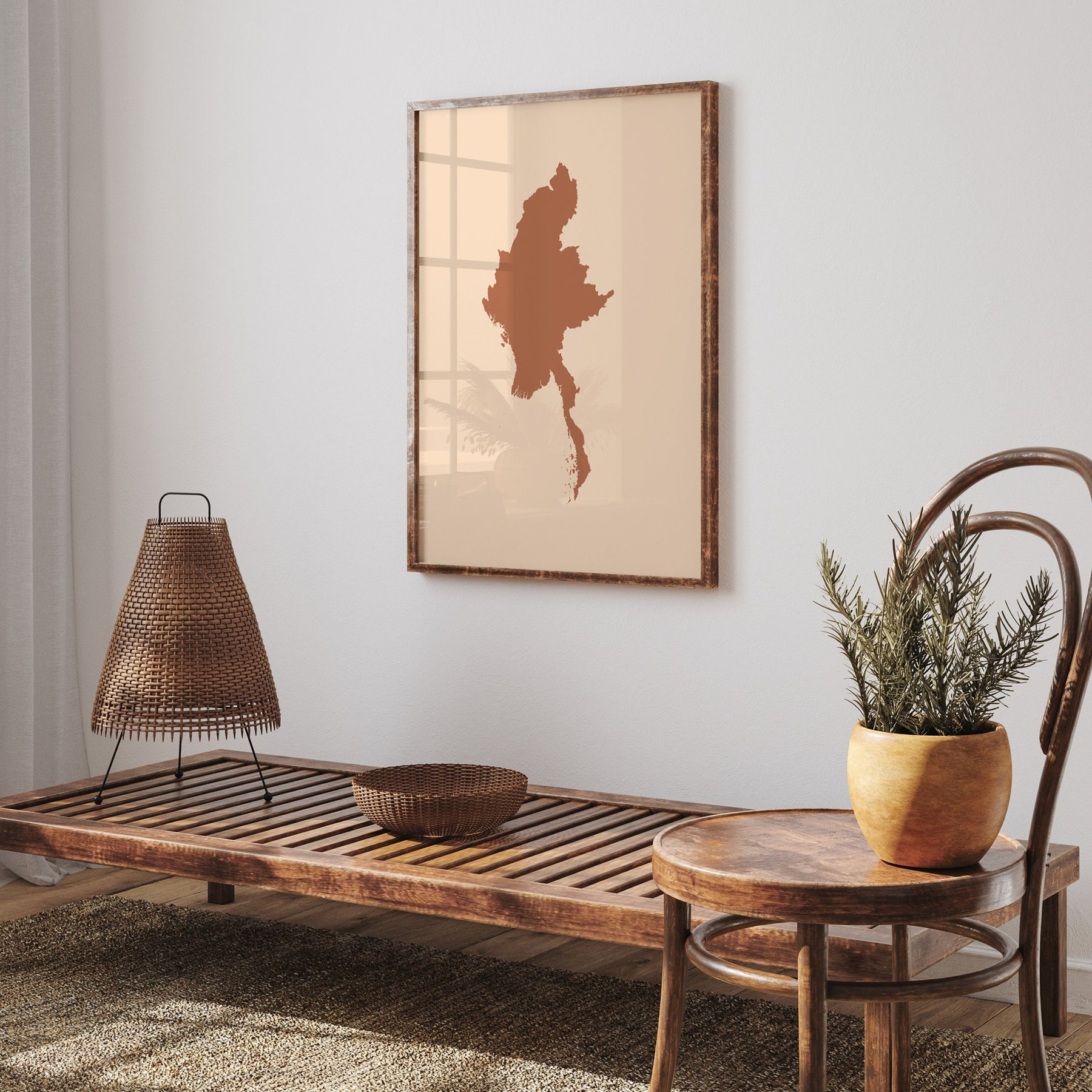 Myanmar Map Boho Wall Art Print Mid Century Travel Poster