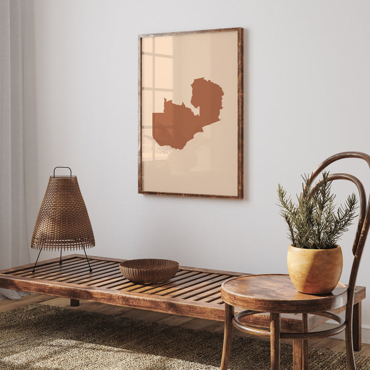 Zambia Map Boho Wall Art Print Mid Century Travel Poster