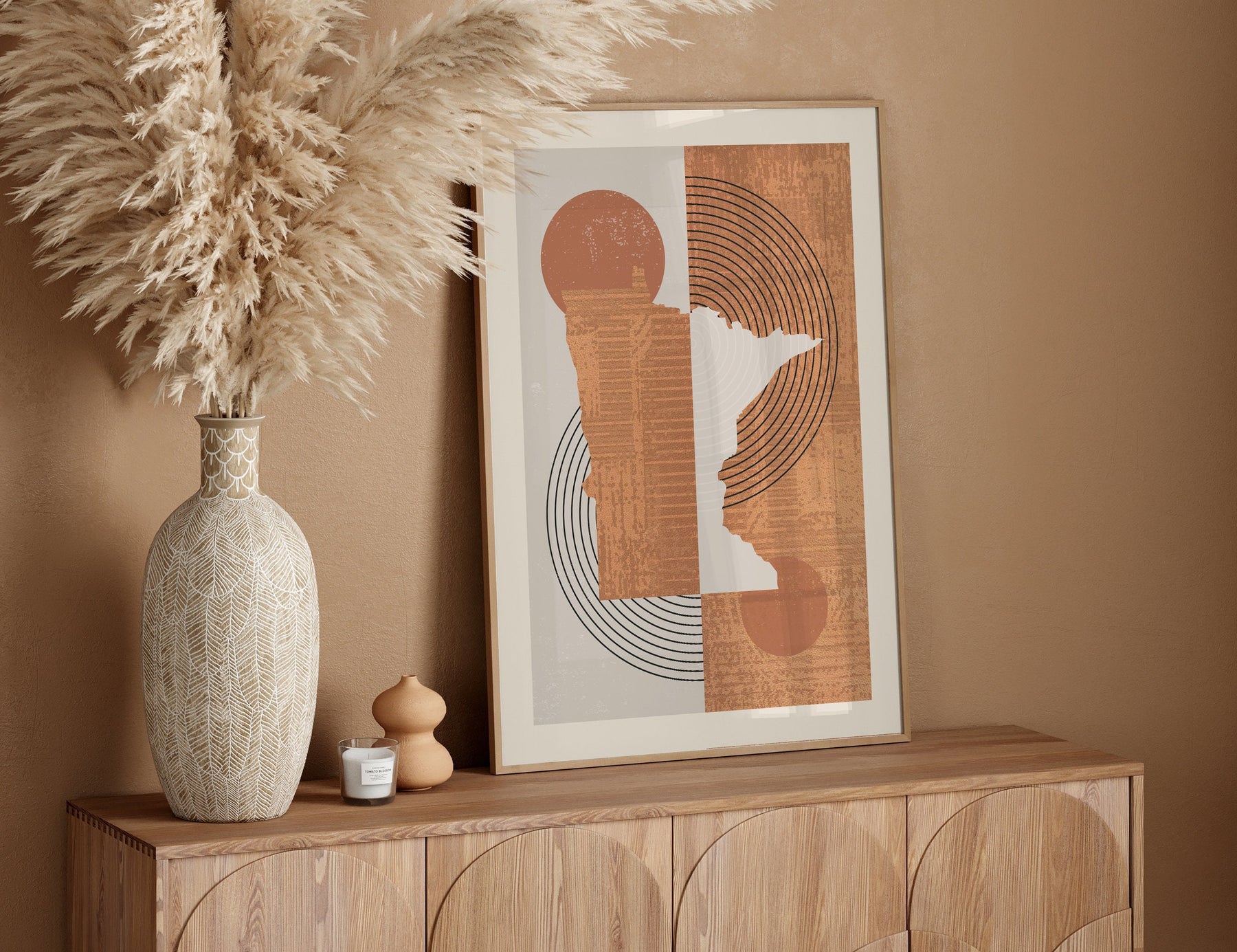 Minnesota Map Boho Wall Art Print | Mid Century | USA | United States of America