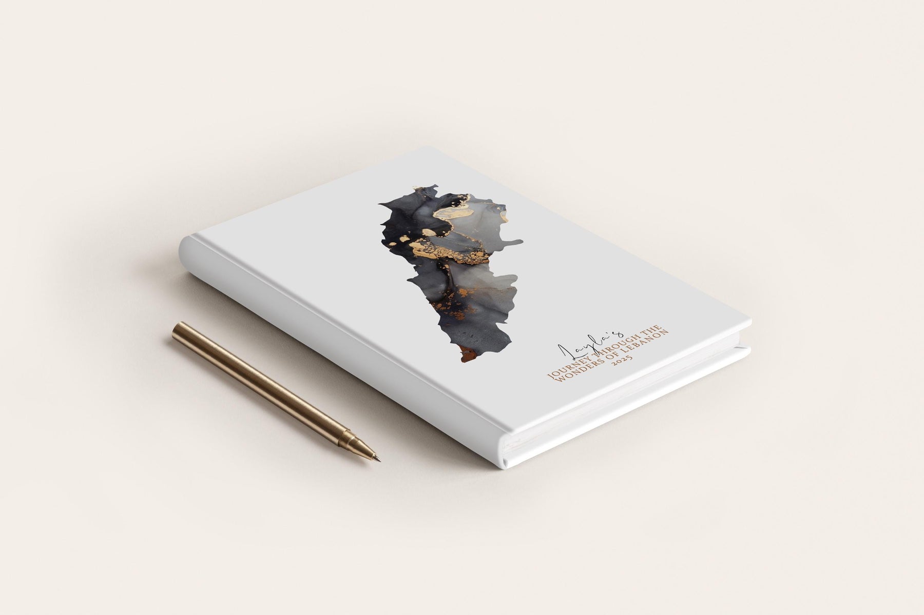 This beautifully crafted personalised journal is perfect for capturing your thoughts, plans, or daily reflections. With an elegant map design in a luxurious black and gold motif, this journal brings sophistication and inspiration to every page.