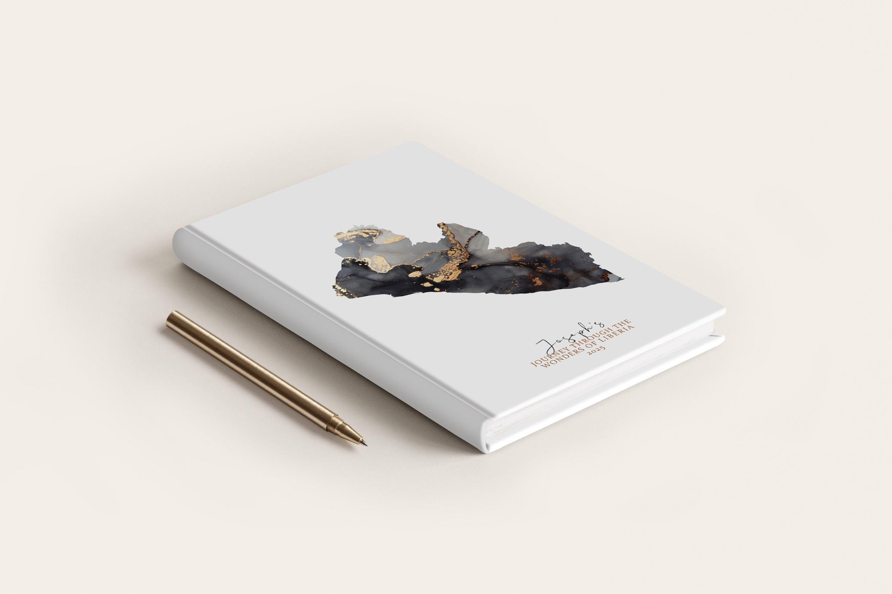 This beautifully crafted personalised journal is perfect for capturing your thoughts, plans, or daily reflections. With an elegant map design in a luxurious black and gold motif, this journal brings sophistication and inspiration to every page.