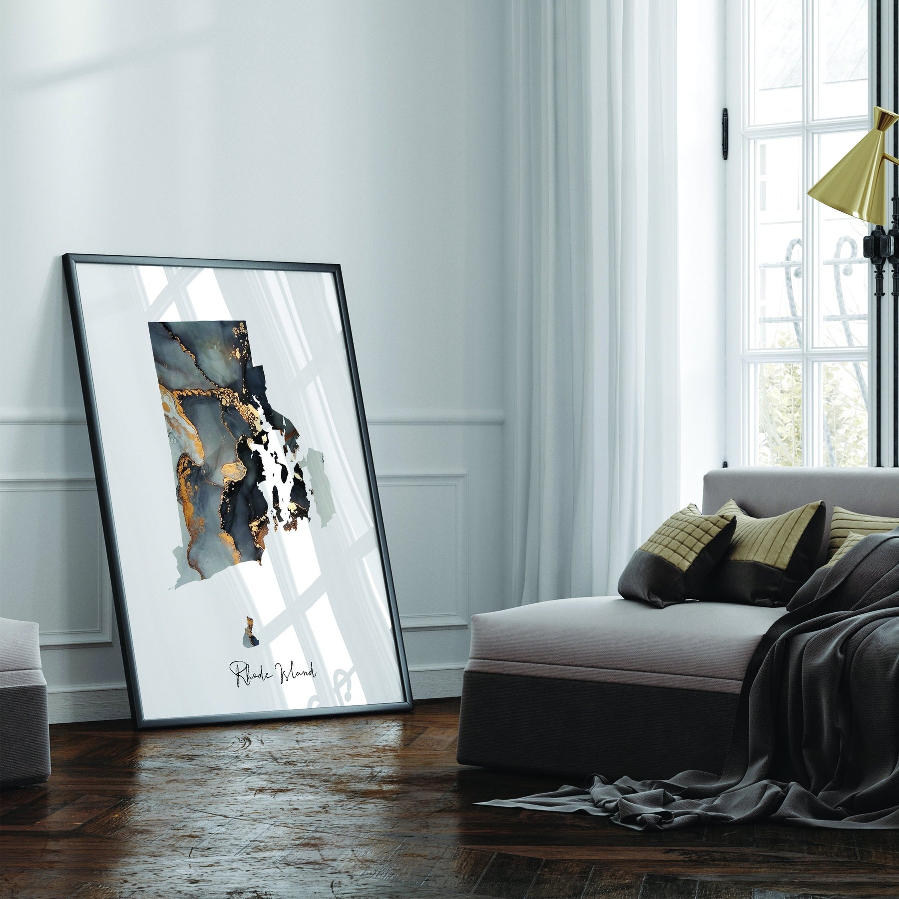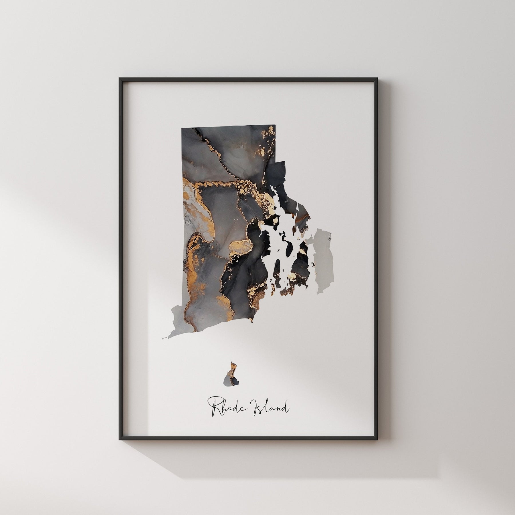 Rhode Island Map Black & Gold Wall Art Print US State | USA | United States of America