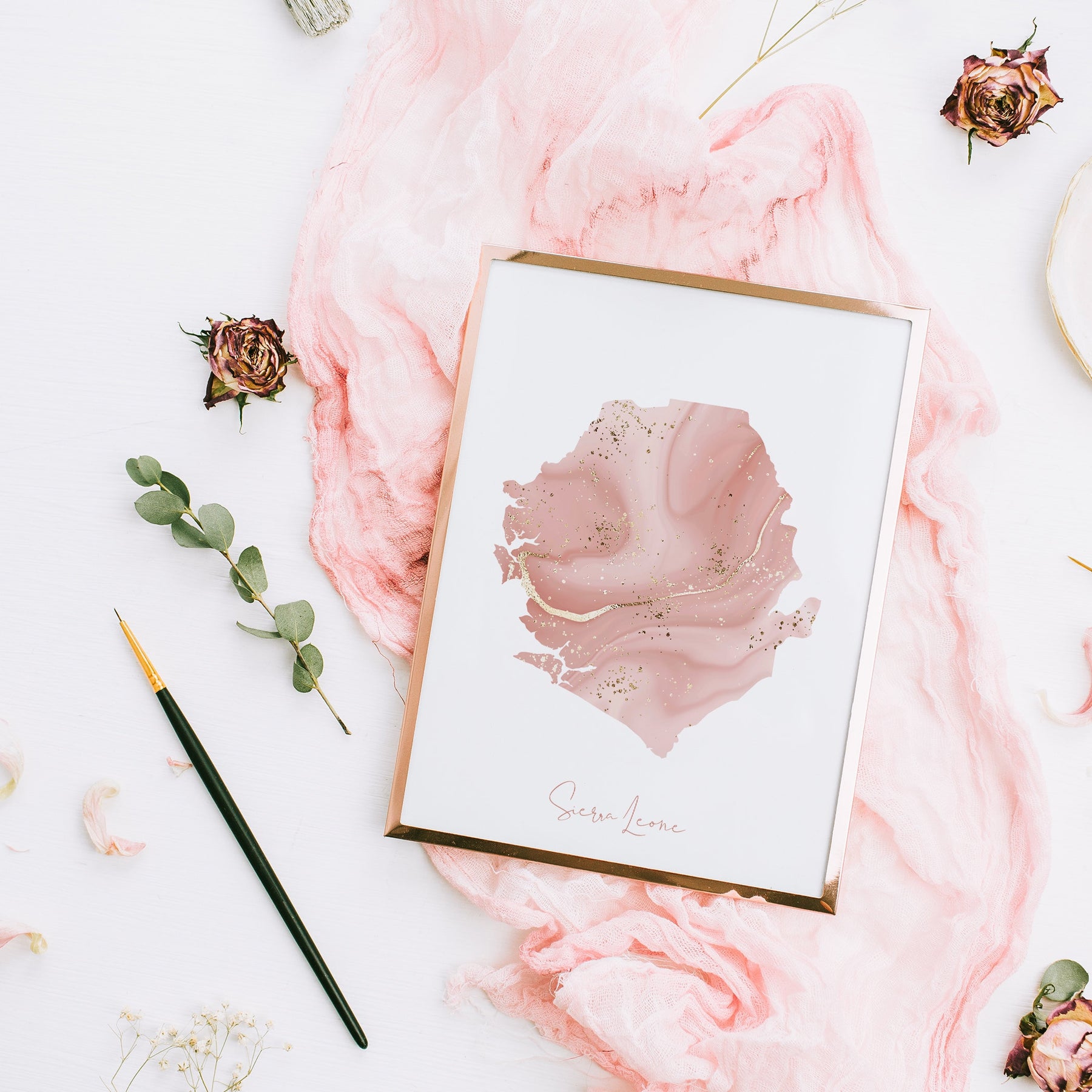 Unframed Pink & Gold Sierra Leone Map Wall Art Print (Please note the colours may vary slightly from those displayed on your screen)