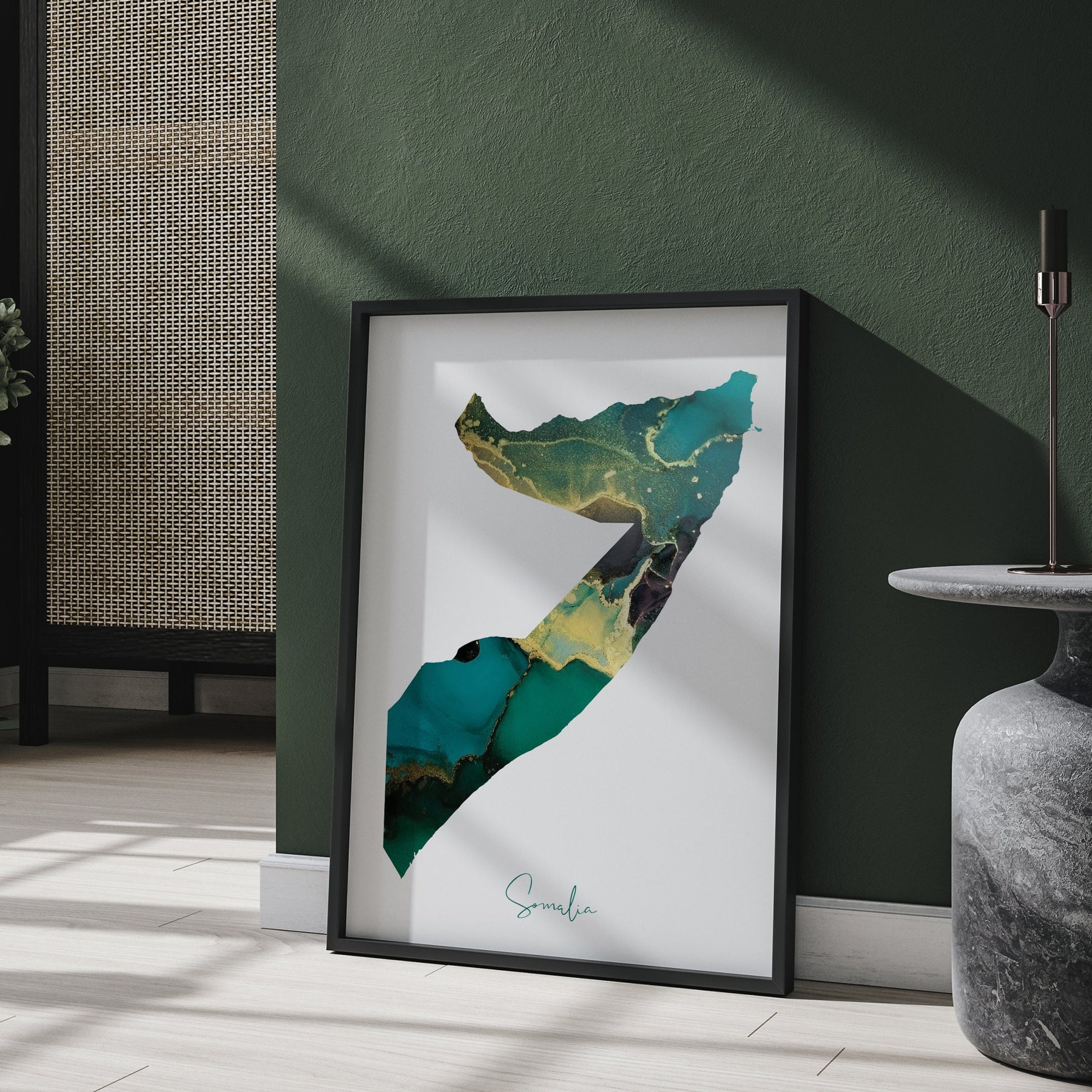 Unframed Emerald Green & Gold Somalia Map Wall Art Print (Please note the colours may vary slightly from those displayed on your screen)